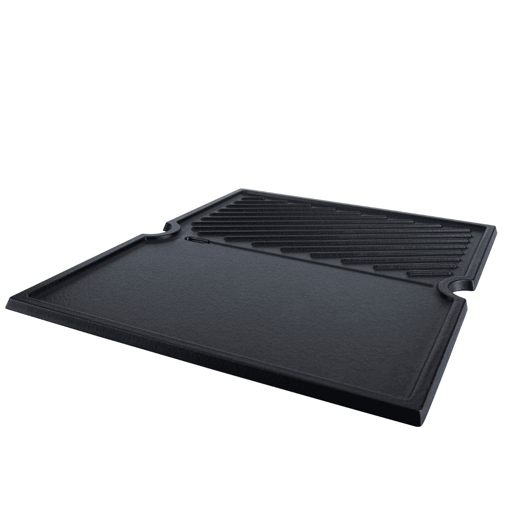 2 большие литые пластины гриля с решеткой и плоской поверхностью для жарки продуктов.