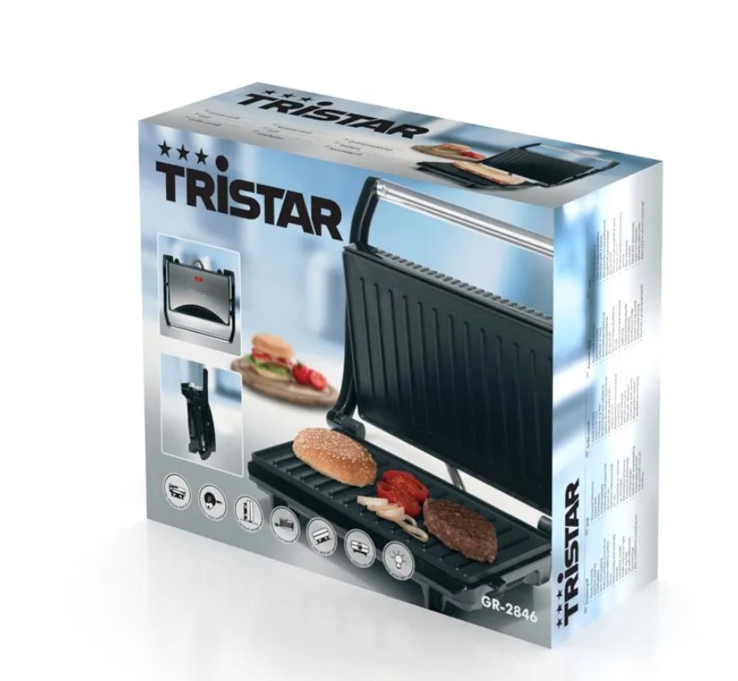 Электрогриль Tristar GR-2846 - простой и надежный прибор для домашнего использования, который позволит не только разогревать сэндвичи и бутерброды, но и готовить панини, а так же различные блюда из мяса, рыбы и овощей на мангале. Корпус изготовлен из прочной нержавеющей стали, а небольшие размеры позволяют разместить устройство даже на небольшой кухне.