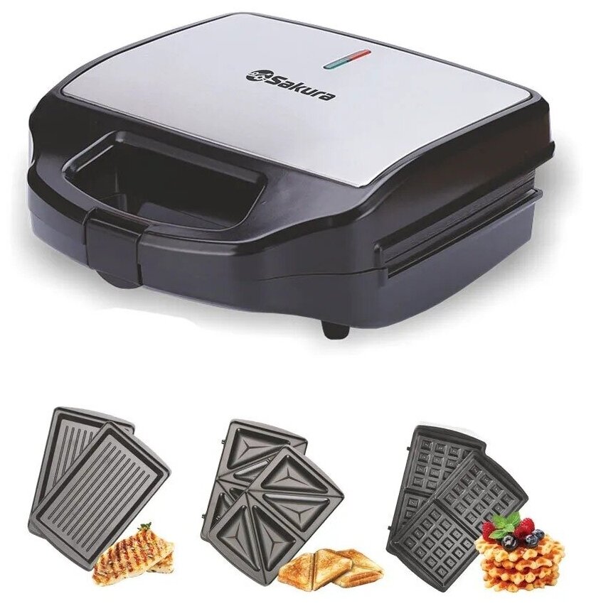 Панели для жарки: 3 в 1: съемные панели для приготовления сэндвичей, венских вафель, гриля; материал: металл