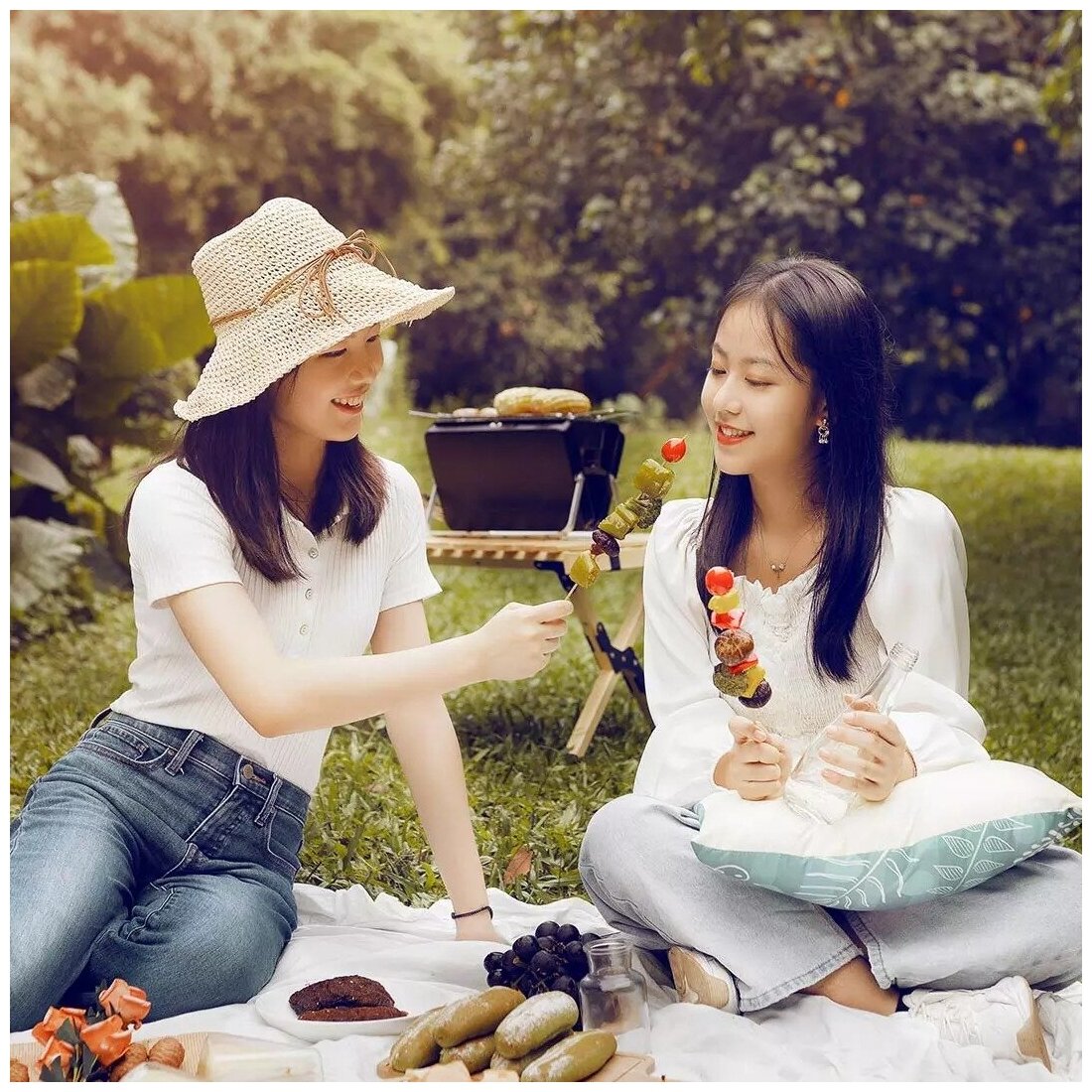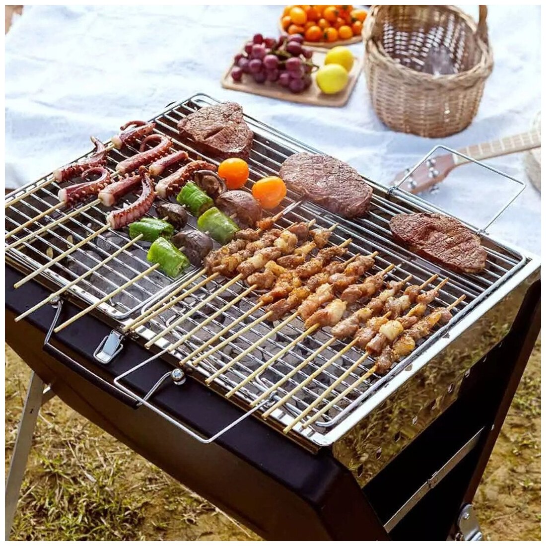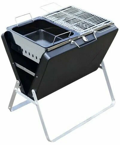 Гриль выполнен в виде складного чемодана, он легкий и удобный для переноски. Наслаждайтесь барбекю без длительной подготовки!