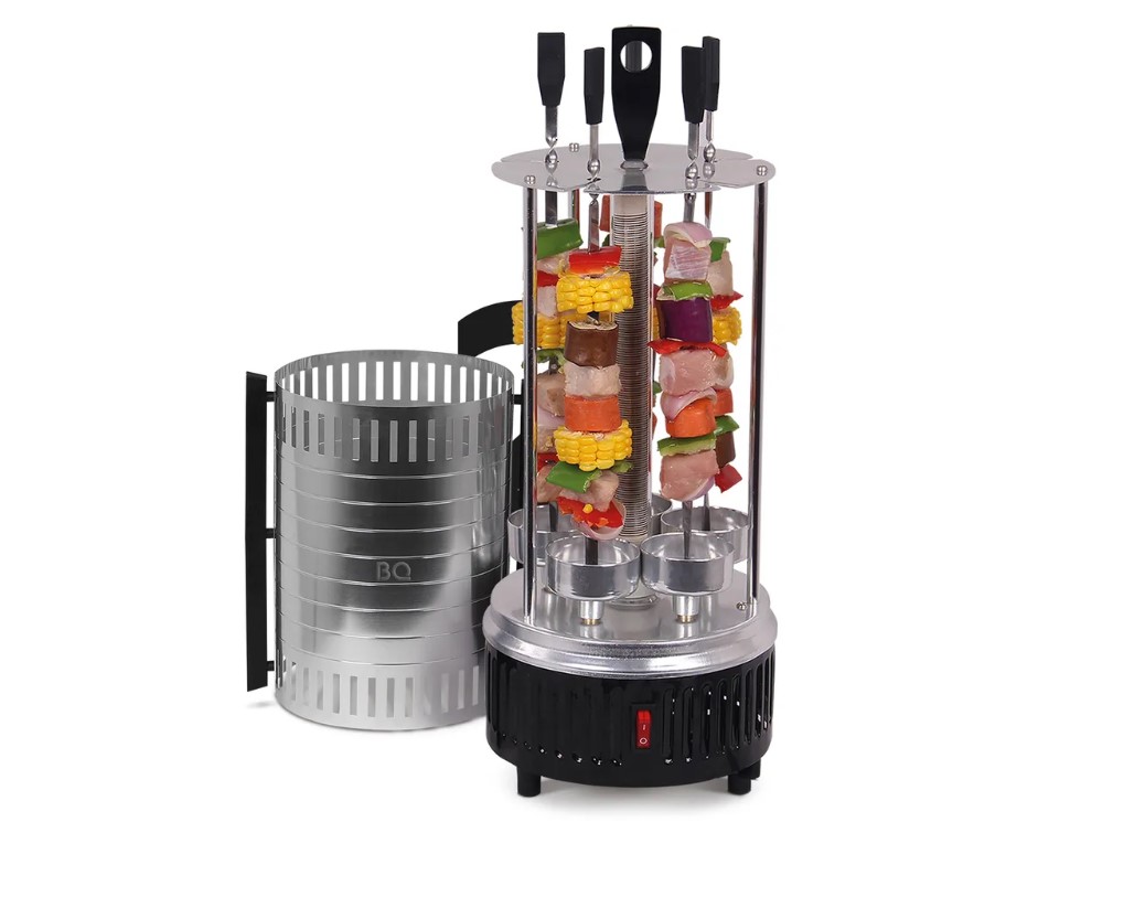 Чтобы полакомиться шашлыком, не обязательно ждать лета и поездки на природу! Электрическая шашлычница от компании BQ приготовит для вас нежное и ароматное блюдо в домашних условиях. Особая конструкция шашлычницы обеспечивает равномерную прожарку каждого куска мяса. Данная модель проста в использовании, а также не требует специального ухода. В комплект входят 5 шампуров из нержавеющей стали, которые вращаются со скоростью 2,7 об/мин., за счет чего продукты равномерно прожариваются со всех сторон. Мощность в 1000 Вт позволяет достаточно быстро разогреть нагревательный элемент из керамики на шашлычнице для кухни до максимальных 240 градусов.