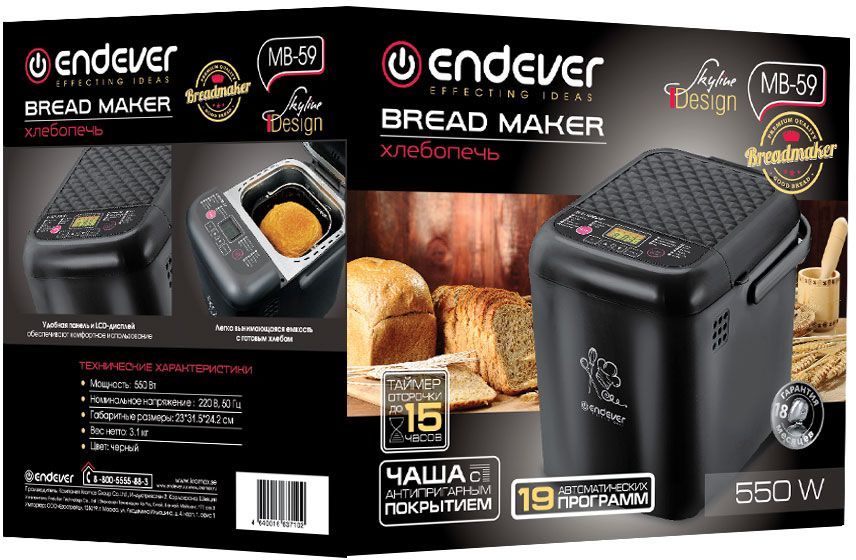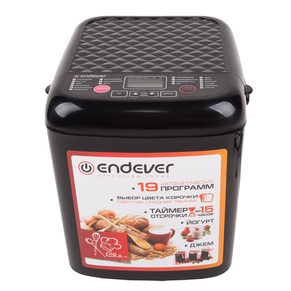 Программы выпечки: Классический, Французский, Цельнозерновой, Бородинский, Быстрый, Сдоба, Безглютеновый, Хлеб с добавками, Десерт, Перемешивание, Бездрожжевое тесто, Дрожжевое тесто, Кекс, Джем, Йогурт, Выпекание, Тушение, Разморозка, Обжарка