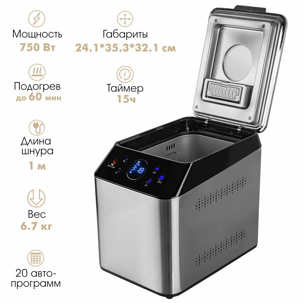 20 автоматических программ приготовления, включая программы "ПЕКАРЬ" и "МУЛЬТИПЕКАРЬ", таймер отложного старта до 15 часов