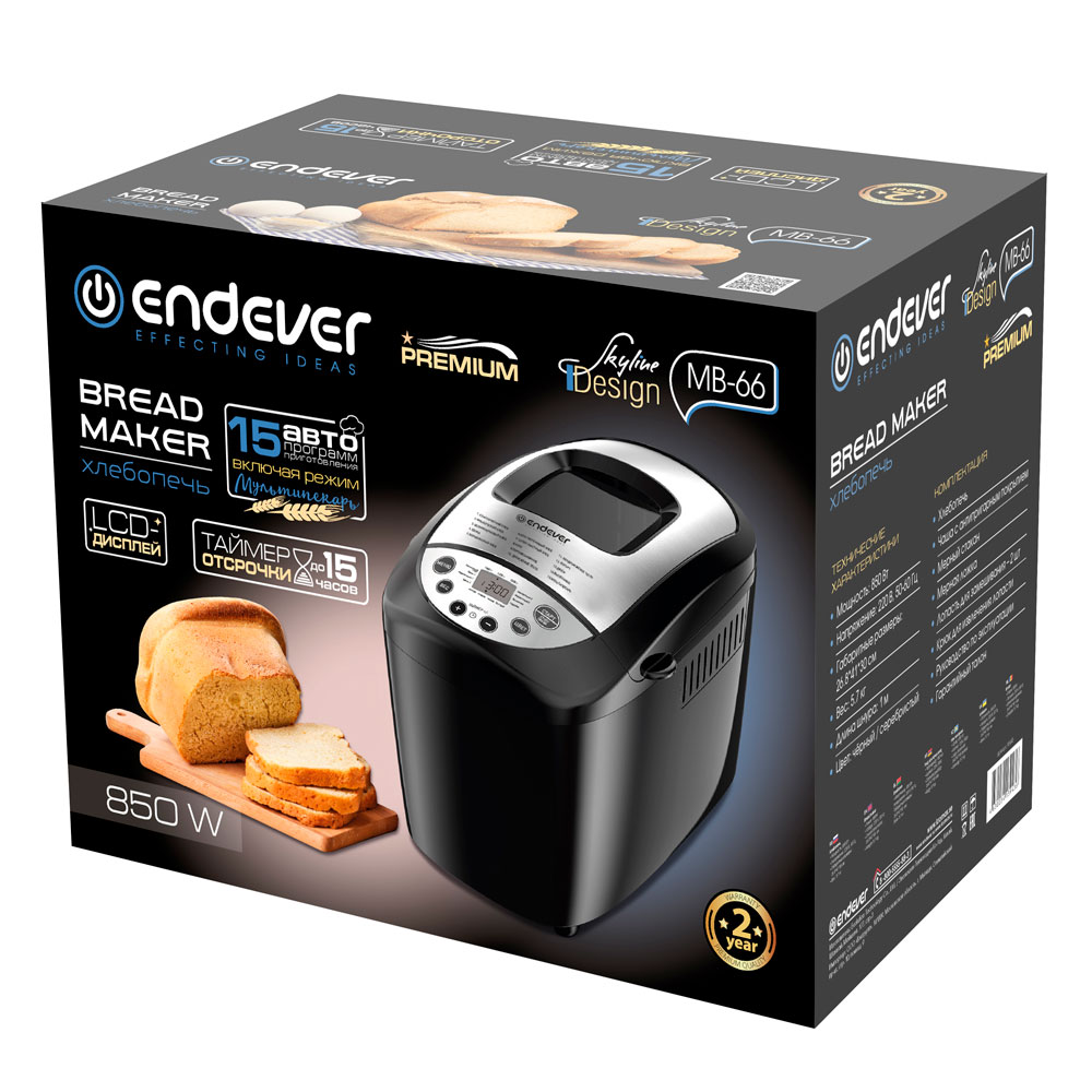 Хлебопечь Endever Skyline MB-66 - это универсальное и функциональное устройство, которое поможет вам приготовить вкусную и ароматную выпечку в домашних условиях. Мощность 850 Вт позволяет быстро и эффективно выпекать различные виды хлеба, подготовить тесто для выпечки, пиццы, пирогов и многое другое, а вес готовой продукции может составлять 1000 / 1250 / 1500 грамм, что позволяет удовлетворить потребности даже большой семьи.