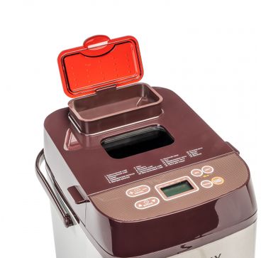 Функции | диспенсер выбор размера хлеба / 500, 750 г / выбор степени запекания / три цвета корочки / таймер отсрочки старта / 15 часов / поддержание температуры / 60 минут / режим быстрой выпечки |