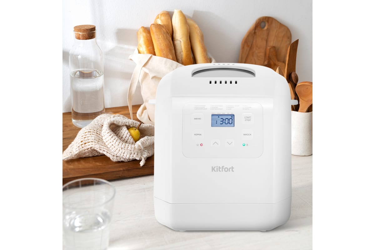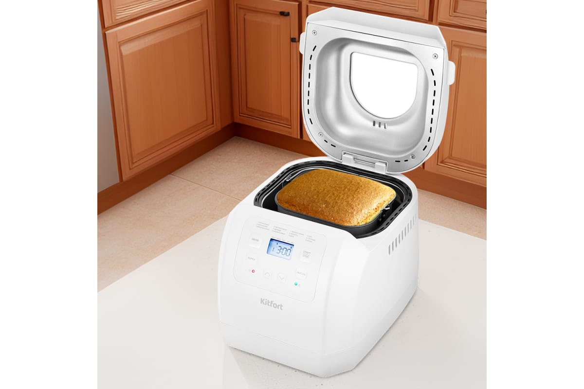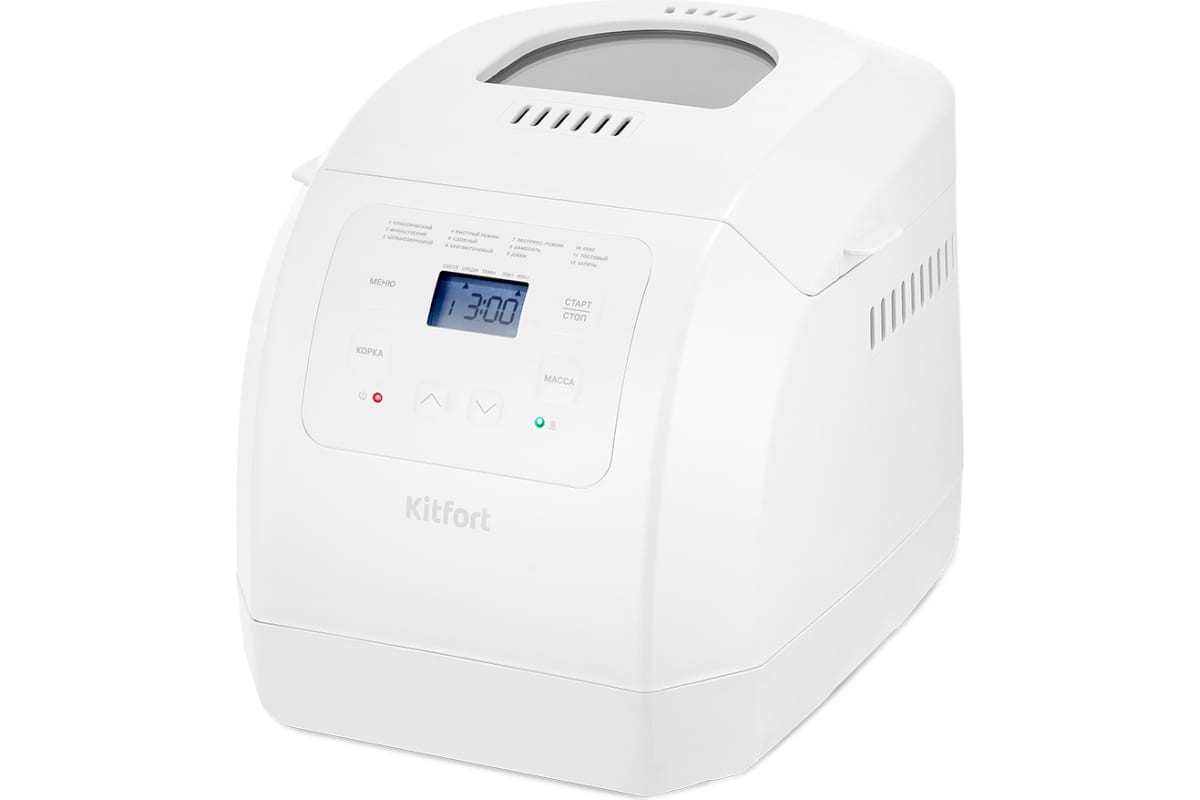 Хлебопечь КТ-312 позволяет готовить различные виды хлеба, джем и кексы, а также тесто. Корпус прибора сделан из пластика. В крышке есть прозрачное окно, через которое можно наблюдать за процессом приготовления.