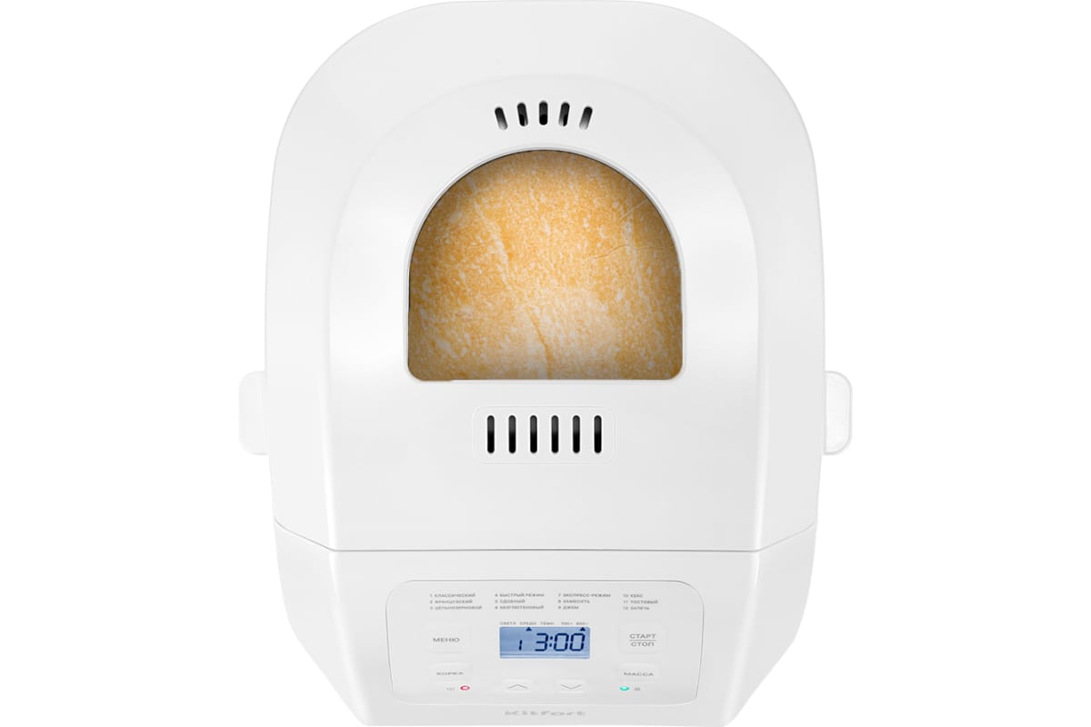 С помощью 12 автоматических программ вы легко приготовите вкусную домашнюю выпечку, ржаной хлеб, сдобу, джем или десерты, замесите тесто для пирогов и пиццы. Вы можете начать приготовление в более позднее время, используя функцию отложенного старта, или,наоборот, воспользоваться программой ускоренной выпечки. У прибора есть функцией выбора веса готового продукта и цвета корочки в соответствии с вашими вкусовыми предпочтениями. Во время приготовления вы можете добавить в тесто дополнительные ингредиенты, например цукаты или орехи. Об этом в нужное время прибор сообщит звуковым сигналом.