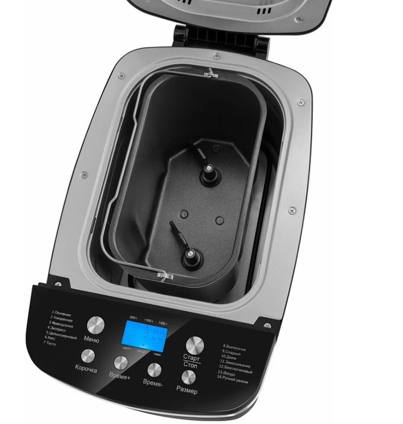выбор цвета корочки, таймер, регулировка веса выпечки, диспенсер, ускоренная выпечка, поддержание температуры