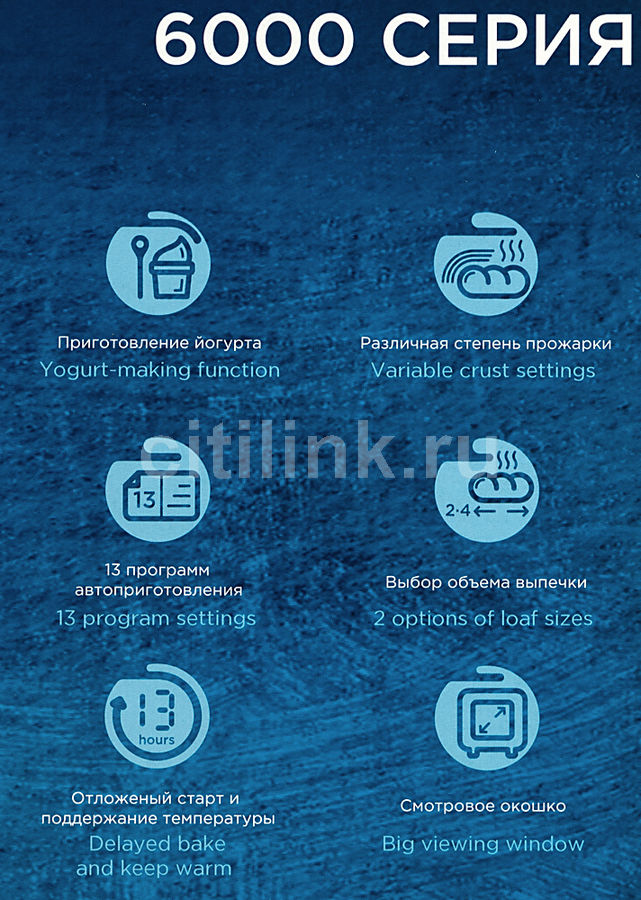 Программы выпечки: йогурт, кекс, приготовление теста, приготовление джема/варенья, режим ускоренной выпечки