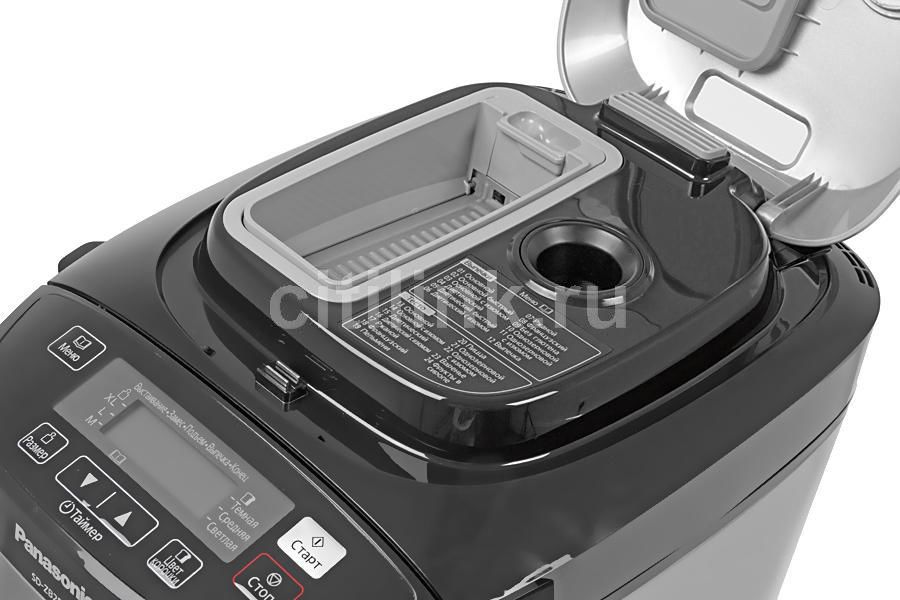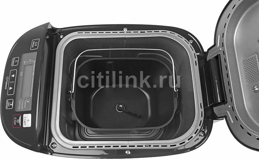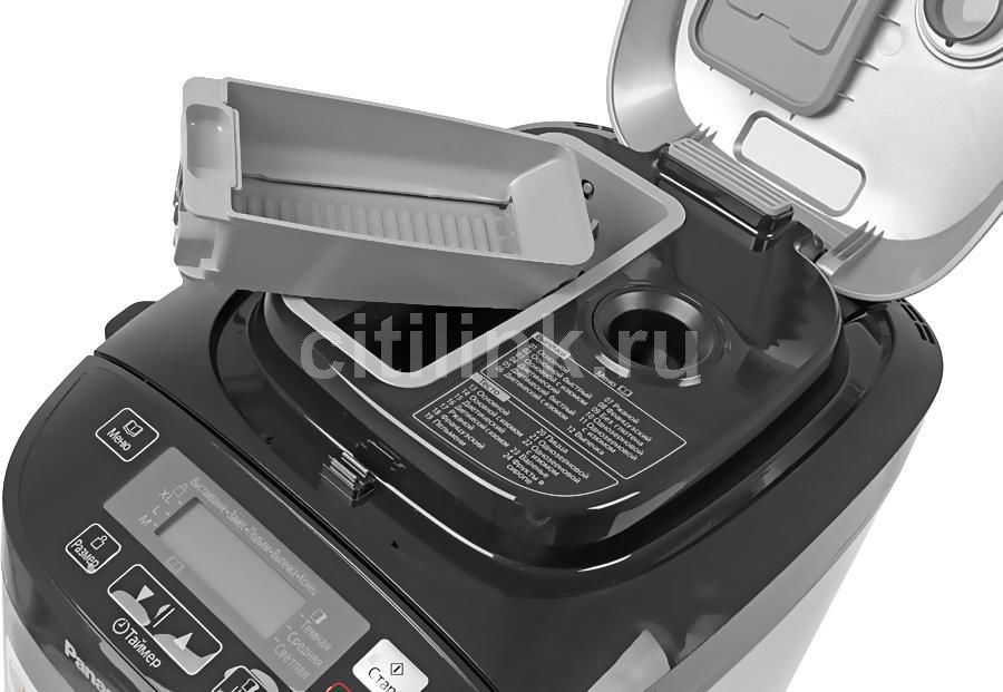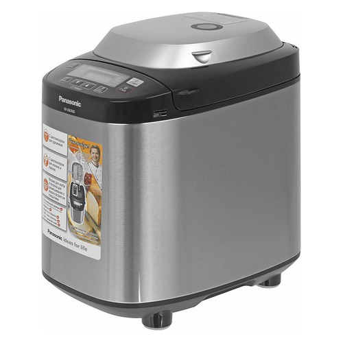 мощность 550Вт, вес выпечки 750/1000/1250г, отсрочка старта 13ч, программ приготовления- 12, диспенсер, форма выпечки буханка, антипригарное покрытие, бездрожжевая выпечка, цвет- серебристый