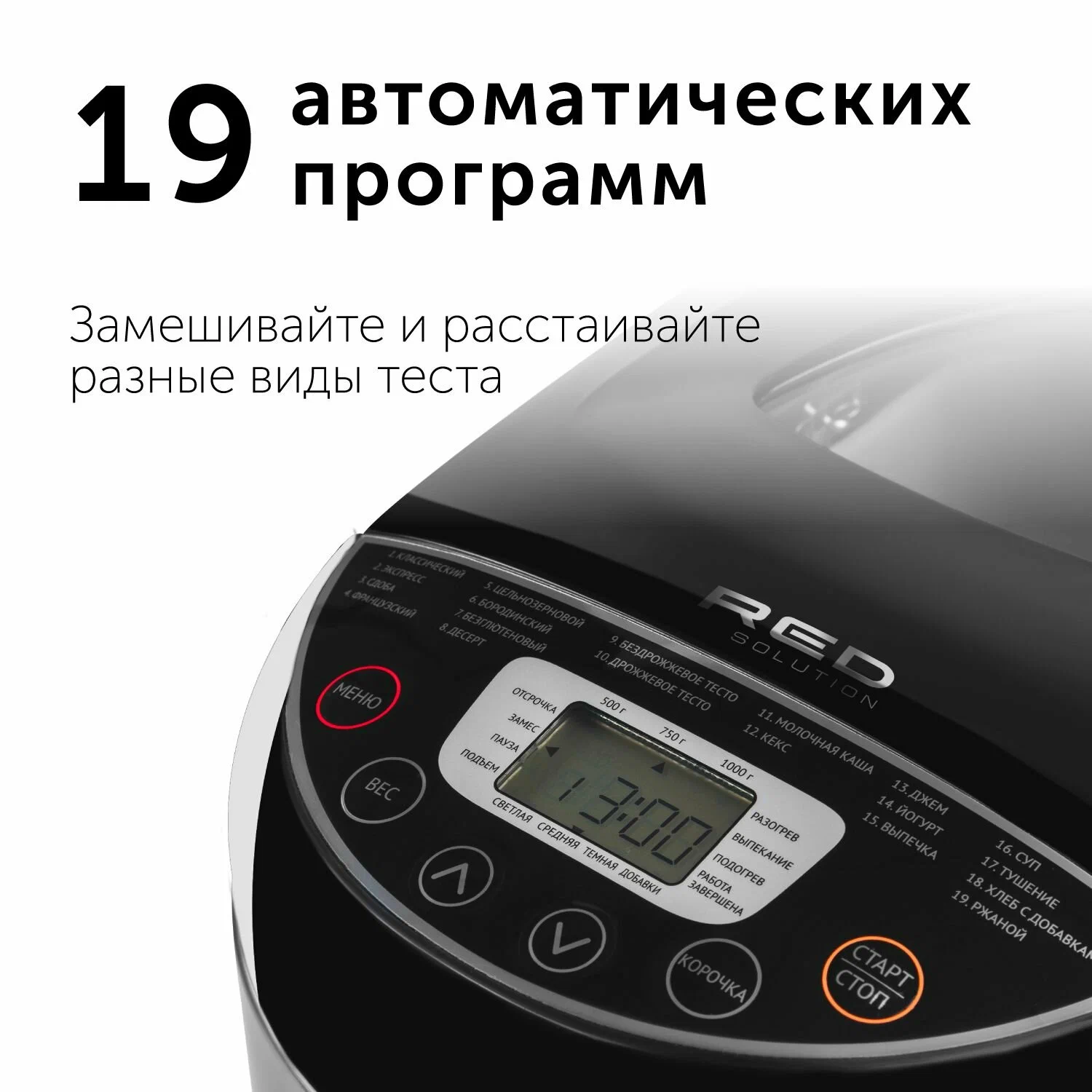 выбор цвета корочки, поддержание температуры, регулировка веса выпечки, Дисплей