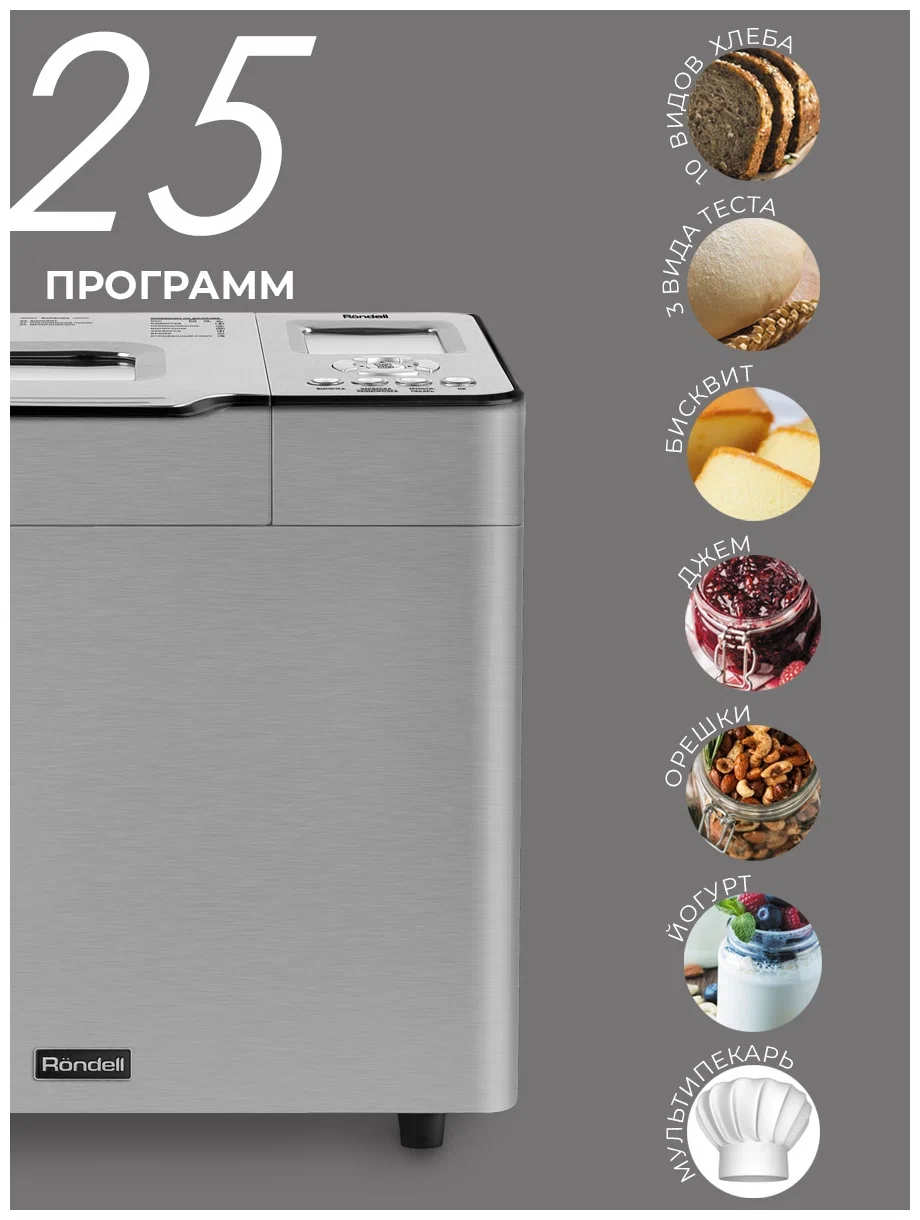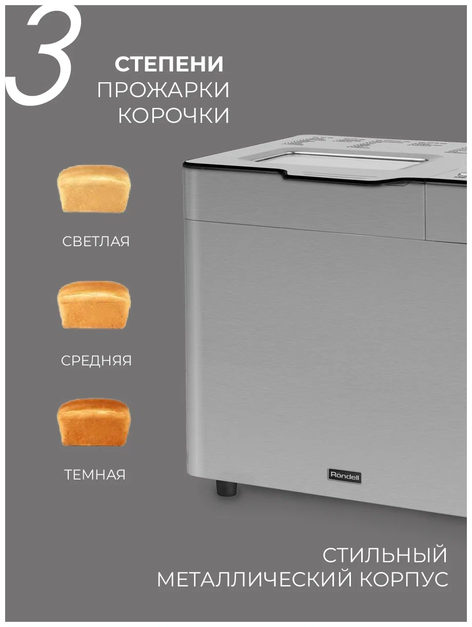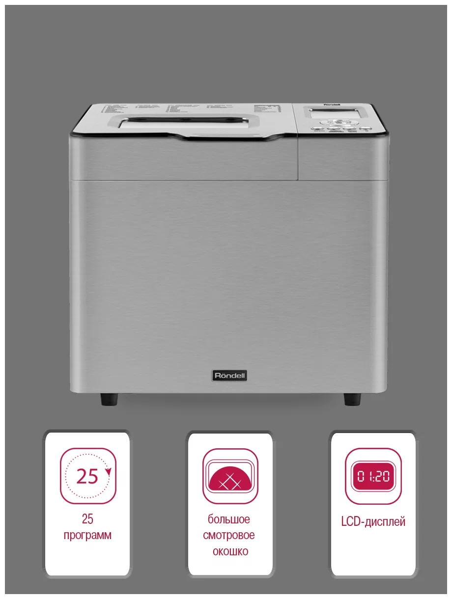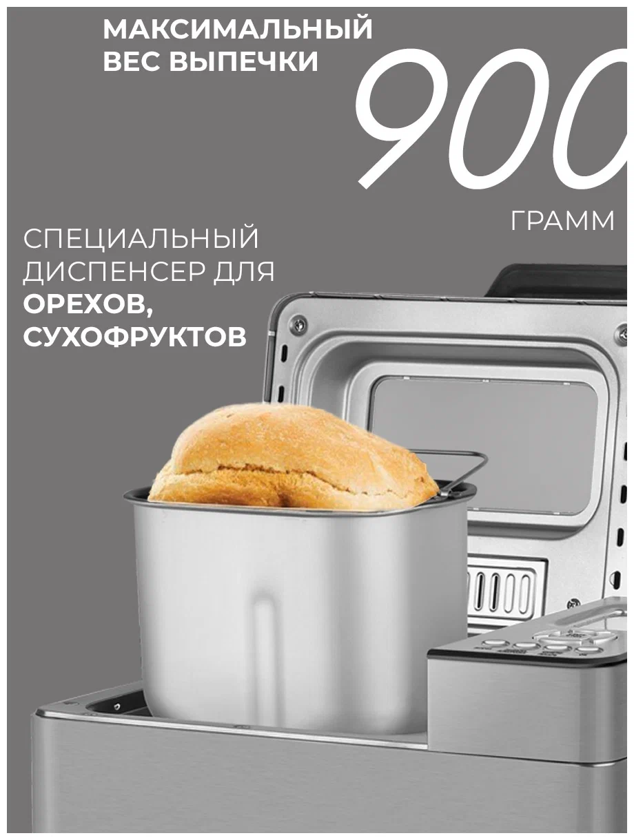 LCD-дисплей с хромированной панелью управления, смотровое окошко; стальной корпус; съемная форма для выпечки