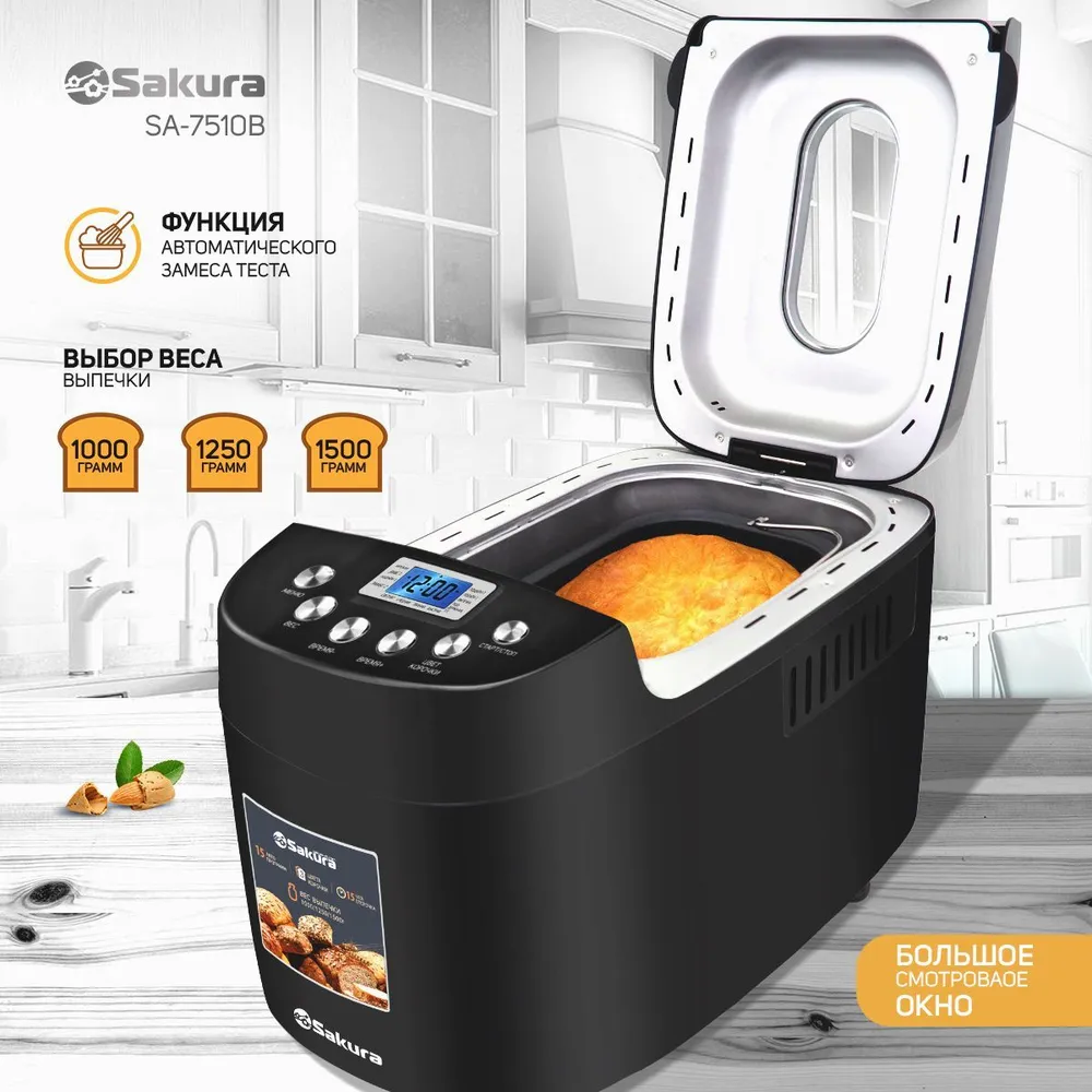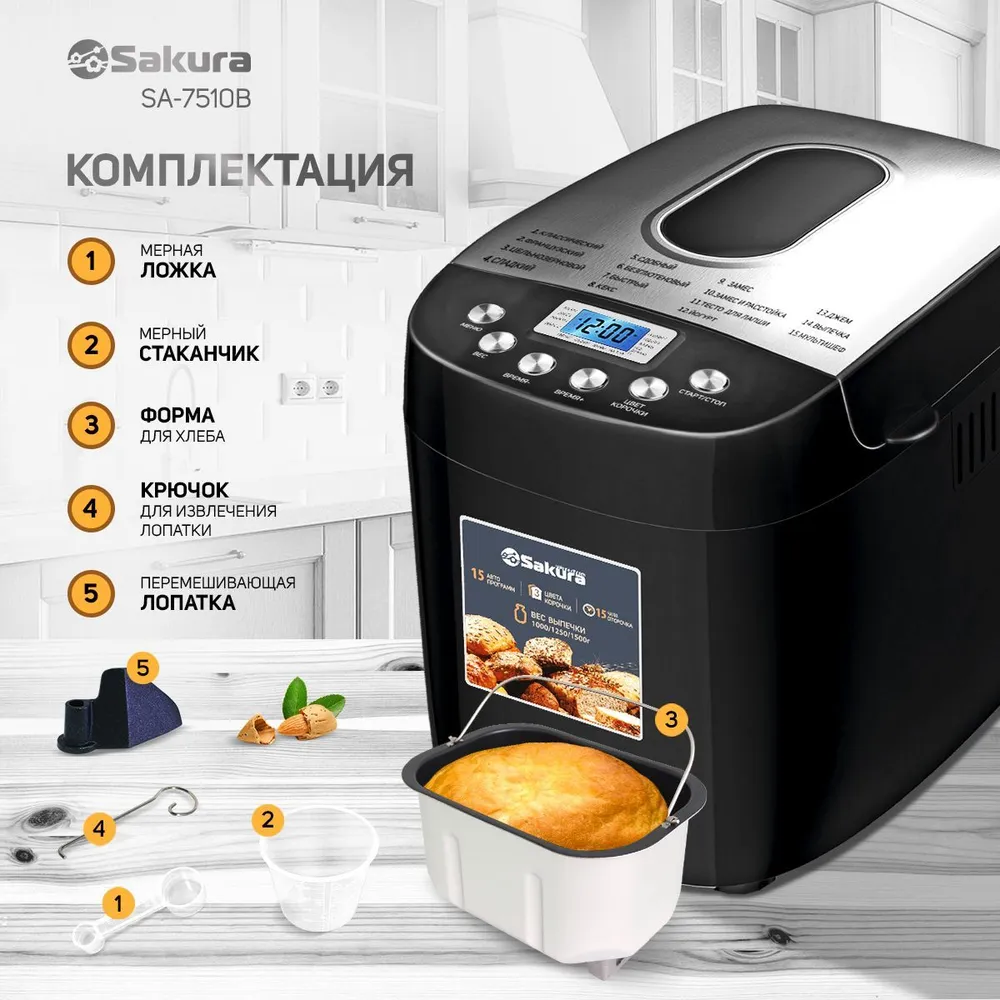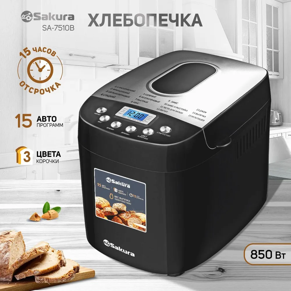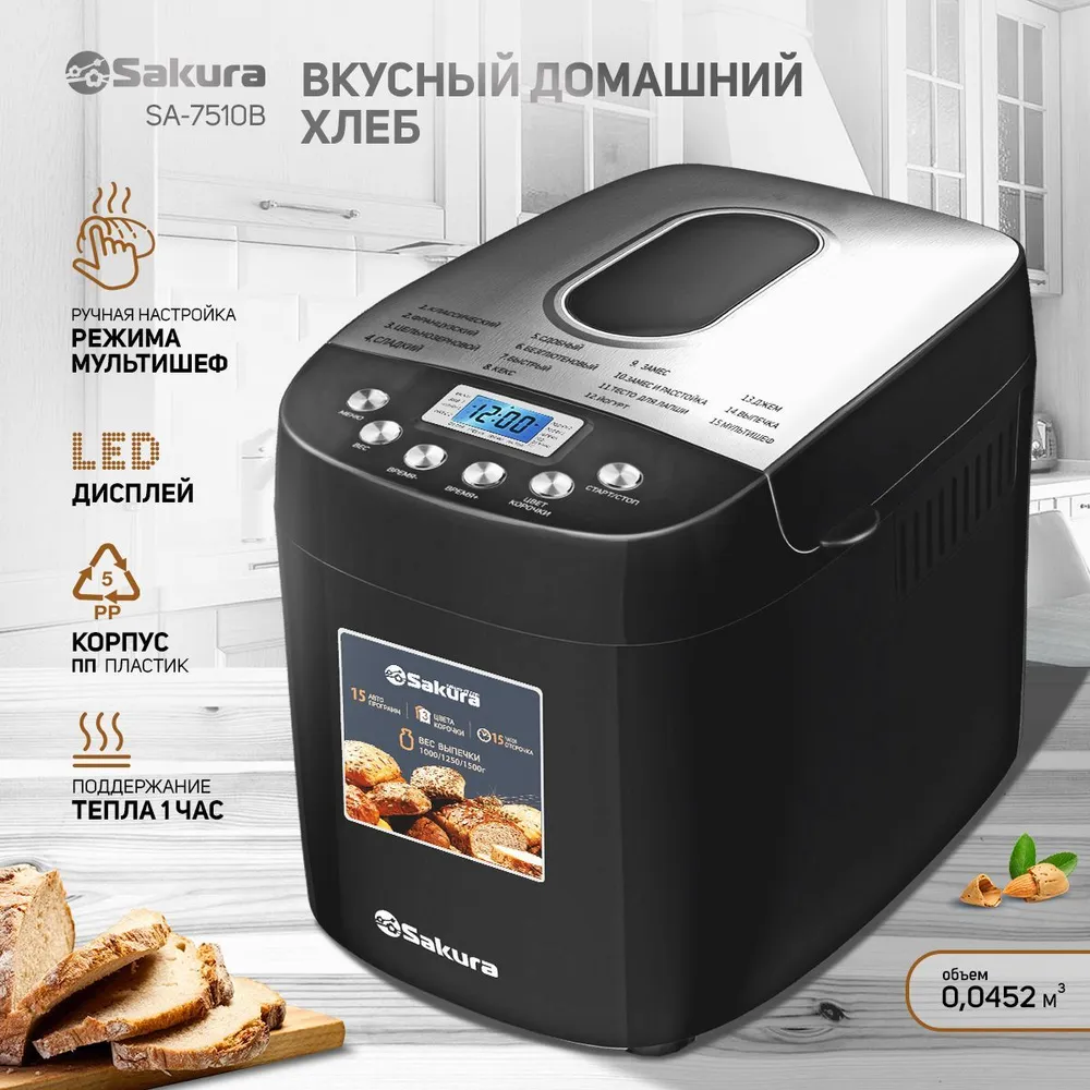 Программы хлебопечения: Классический хлеб, Французский хлеб, Цельнозерновой хлеб, Безглютеновый хлеб, Сдоба, Сладкий хлеб, Быстрый хлеб, Замес с изменением времени, Мультизерновой хлеб, Хлеб для сэндвичей, Хлеб с добавками