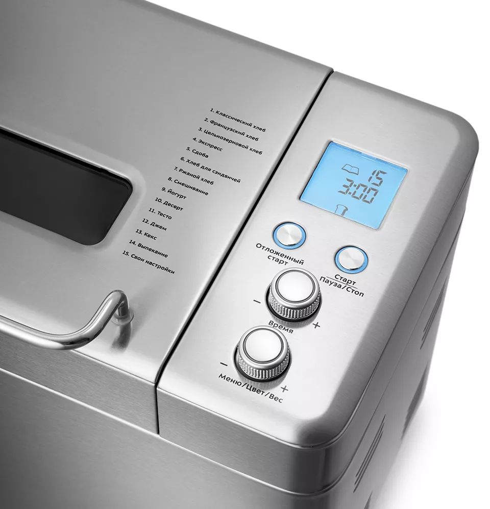 С помощью 15 автоматических программ вы легко приготовите вкусную домашнюю выпечку, хлеб, сдобу, йогурт, джем или десерты. Вы можете начать приготовление позже, используя функцию отложенного старта, или воспользоваться программой ускоренной выпечки.