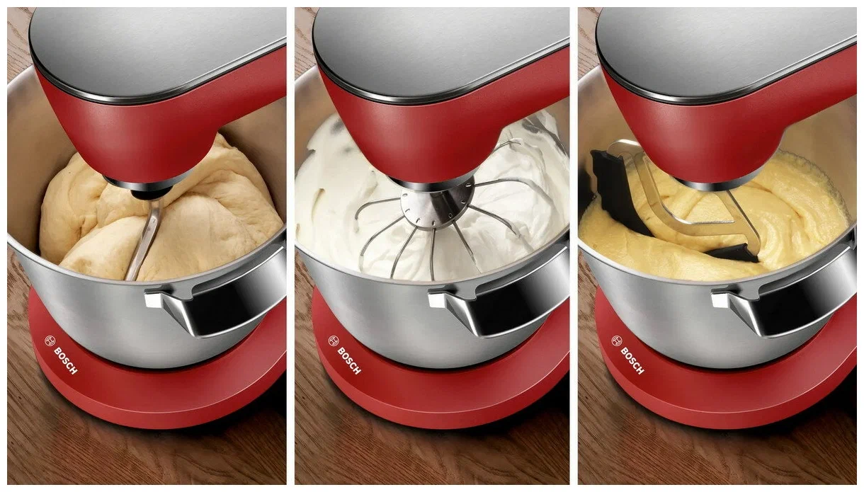 Кухонная машина, венчик с силиконовым покрытием, объемный венчик для взбивания (с регулировкой высоты), крюк для теста.