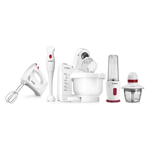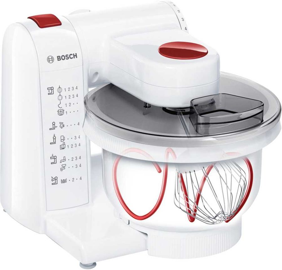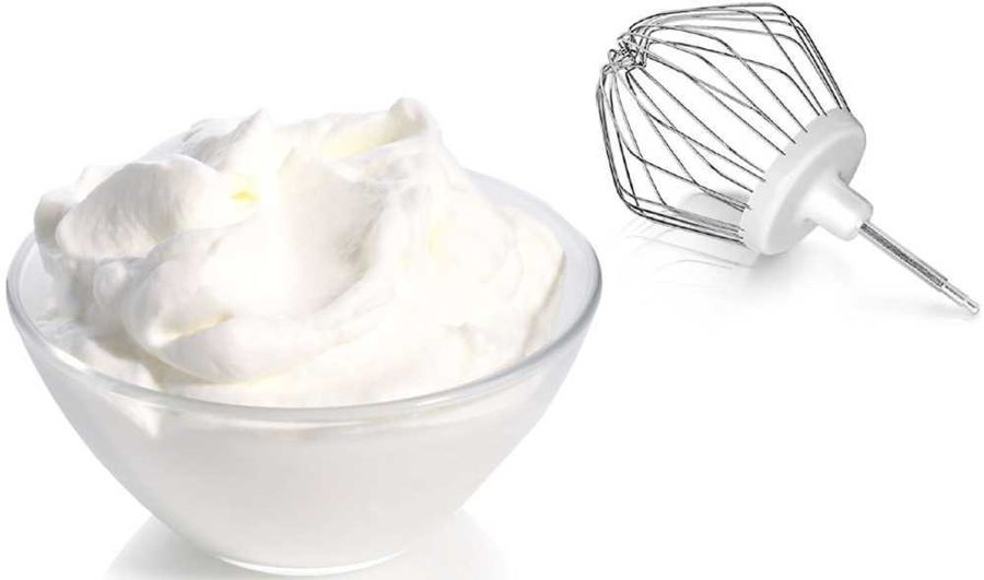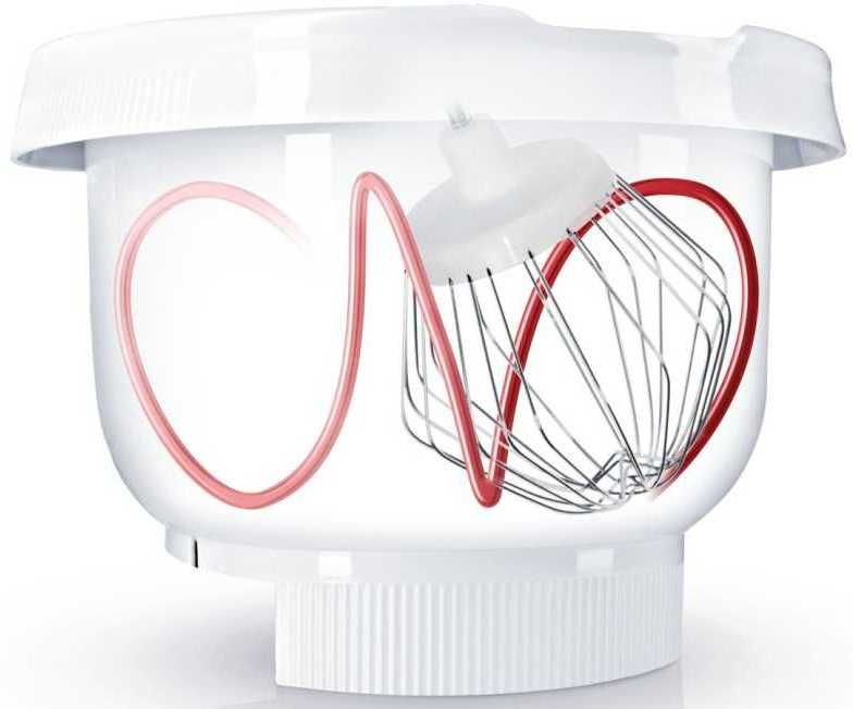 Комплектация: Крюк для теста, венчик для жидкого теста, венчик для взбивания, полупрозрачная крышка с отверстием для загрузки