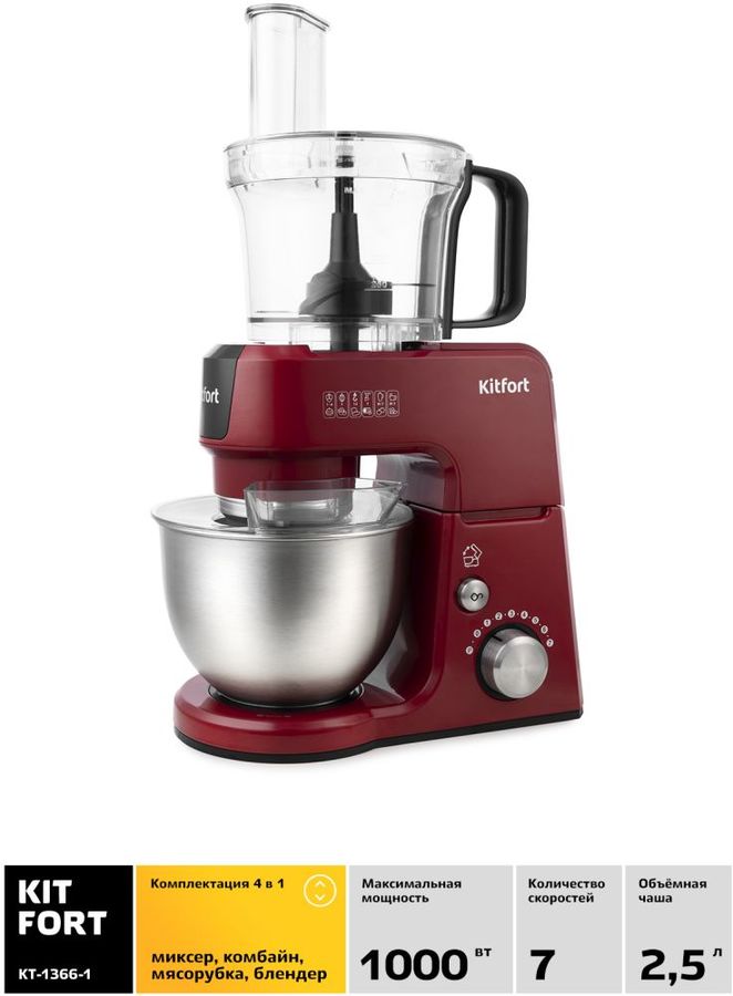 Описание: Kitfort КТ-1366 поможет вам смешать ингредиенты, взбить яичный белок или сливки, приготовить картофельное пюре, соус, крем, мусс, замесить жидкое тесто для блинов и крутое для пельменей и пирогов, перемолоть мясо на фарш, нашинковать овощи и фрукты и смешать ледяной коктейль или смузи.