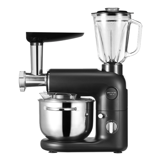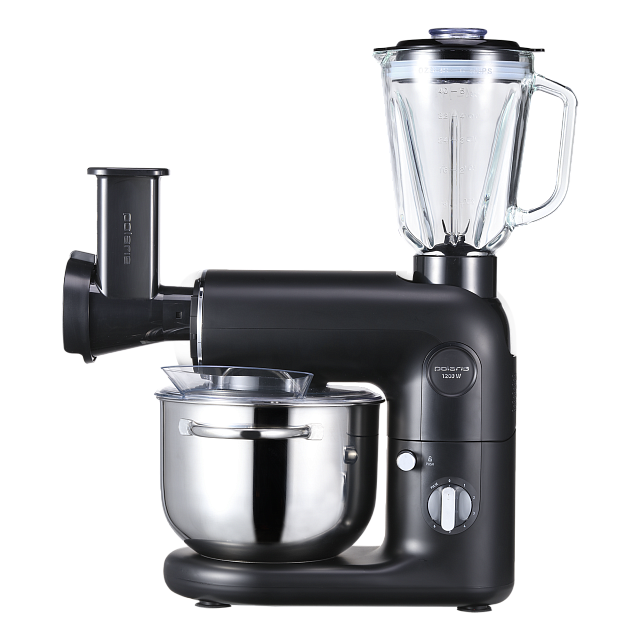венчик для взбивания, крюк для замешивания теста, насадка для смешивания, мясорубка с 3 дисками из нержавеющей стали (3, 5 и 7 мм), насадка для кеббе насадка для колбас блендер (1,5 л) овощерезка 4 барабана (крупная терка, мелкая терка, терка для шинкования, терка для драников)
