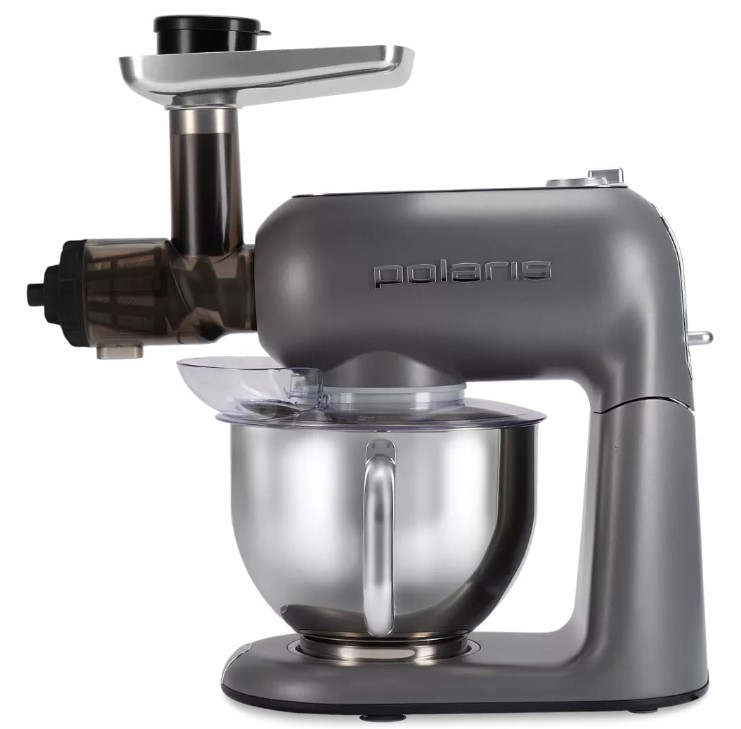 Кухонная машина Polaris PKM 2203L 6-в-1 поможет вам быстро и легко готовить разнообразные блюда. Она выполняет функцию миксера, тщательно взбивает и перемешивает ингредиенты, замешивает тесто, сочетает в себе функции мясорубки, соковыжималки и овощерезки. Все ингредиенты перемешиваются и взбиваются равномерно, не налипают на стенки чаши. Достигается это путем одновременного разнонаправленного вращения насадки и привода к насадке. Вместительная стальная чаша 5,5 л позволяет готовить блюда большого объема. Благодаря 6 скоростям работы и импульсному режиму вы сможете подобрать оптимальную скорость вращения насадок для приготовления различных видов блюд. Высокая мощность позволит быстро и эффективно справляться с задачами любой сложности.