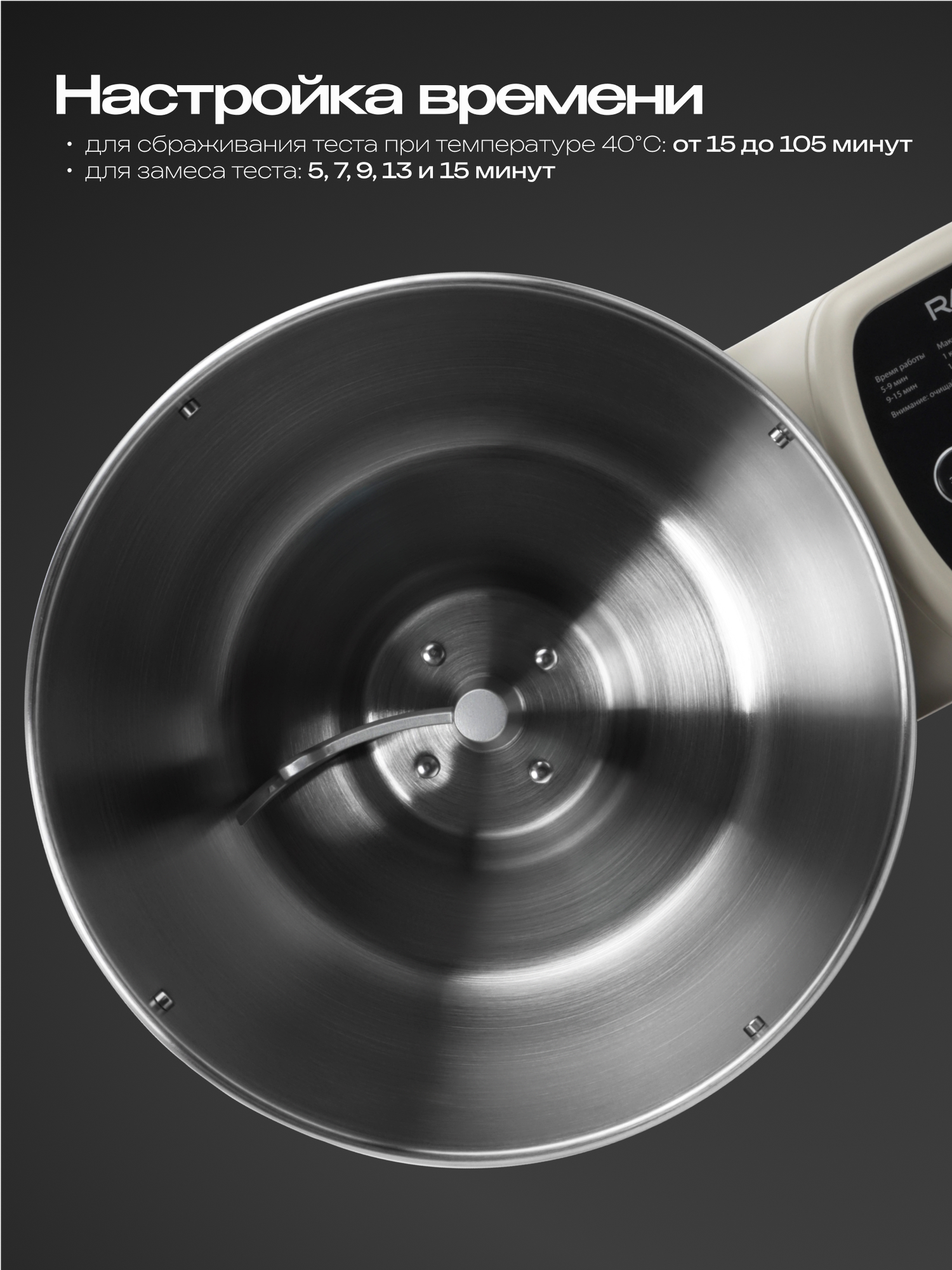 • 5 переменных настроек для регулировки времени замеса: 5 мин, 7 мин, 9 мин, 13 мин, 15 мин;