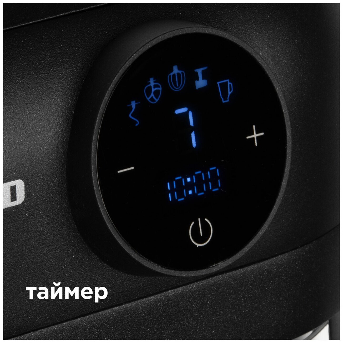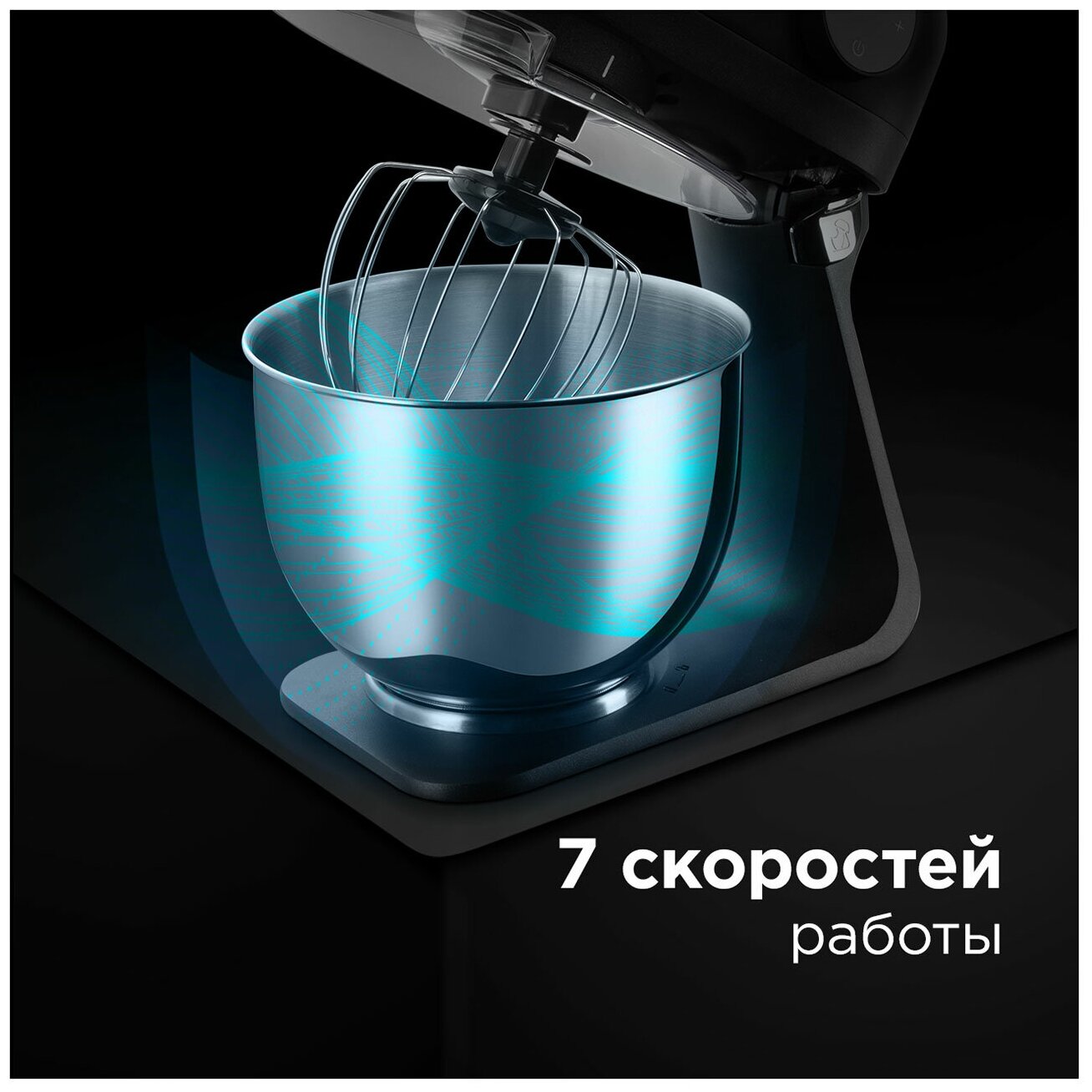 В комплектацию входят 3 насадки планетарного миксера: венчик для взбивания, насадка-лопатка для смешивания продуктов, насадка-крюк для замеса густого теста. Благодаря планетарной системе вращения, насадки миксера обрабатывают смеси равномерно по всему объему чаши.