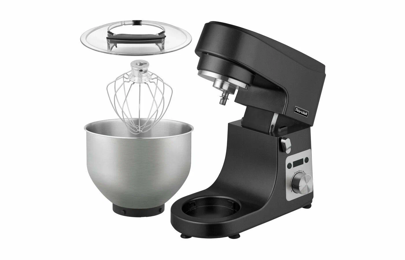 кухонная машина - 1 шт, венчик - 1 шт, лопатка - 1 шт, крюк - 1 шт, документация