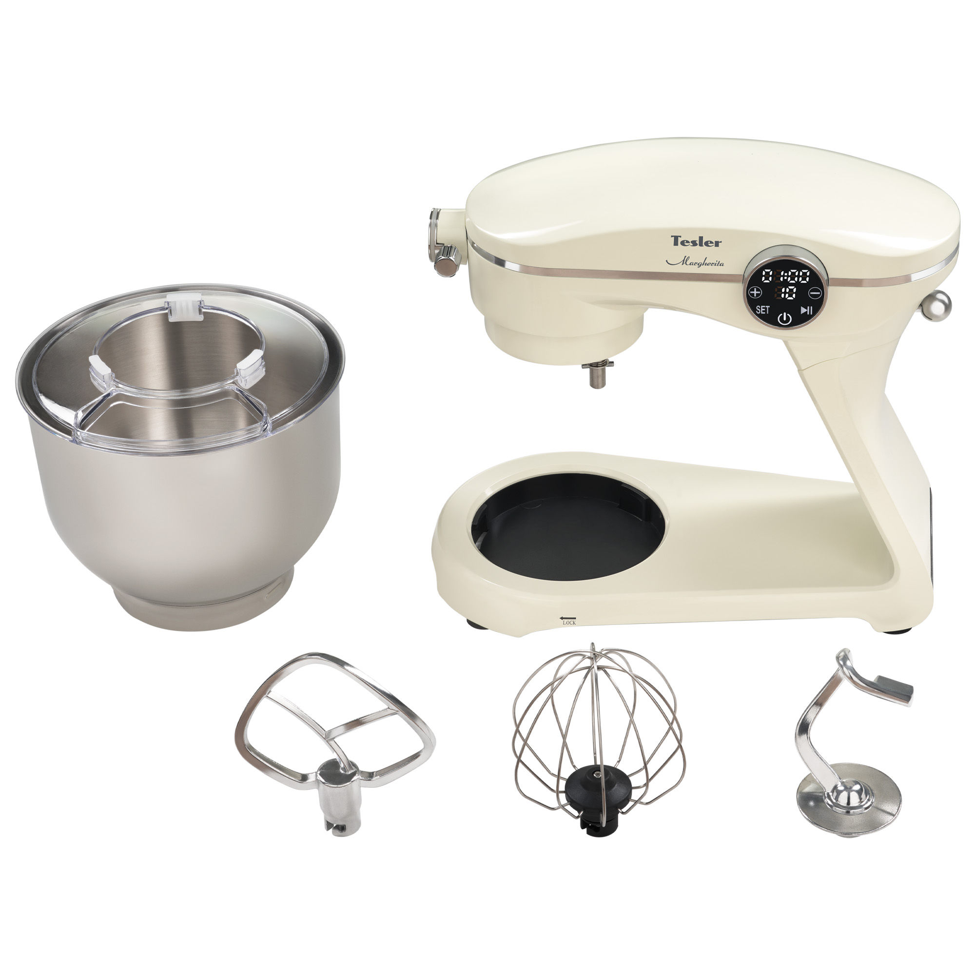 С помощью идущих комплекте аксессуаров вы сможете быстро и эффективно соединять различные ингредиенты. Крюк для замешивания предназначен для приготовления густого теста для пирогов, хлеба и другой выпечки. Насадка для перемешивания подойдёт для смесей средней вязкости, таких как овощные пюре и соусы. Венчик будет полезен для взбивания яиц, сливок, кремов, чтобы придать им воздушность и объем. Конструкция планетарного миксера позволяет взбить венчиком даже 1 яйцо, чтобы приготовить небольшую порцию. Все насадки изготовлены из прочной нержавеющей стали.