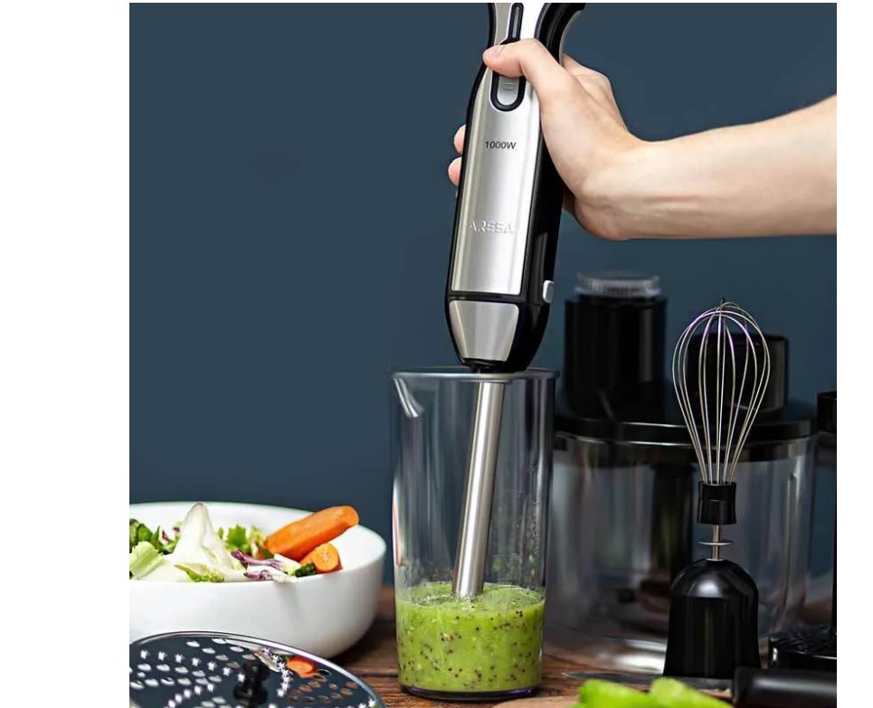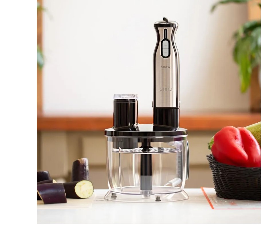 Мощность прибора составляет 1000 Вт, а объем чаши в комплекте 1,75 л.