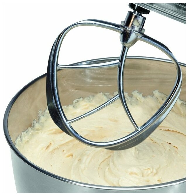 Кухонная машина Bomann KM 398 CB предназначена для приготовления теста, кремов, соусов, взбивания яиц. Это простая в использовании модель с прочной и вместительной чашей из нержавеющей стали, которая займёт достойное место на современной кухне. Шесть режимов работы и три насадки, входящие в комплект, позволяют получить тесто необходимое консистенции: более жидкое, подходящее для приготовления блинов, или более густое, для выпечки. Кухонная машина оборудована прорезиненными ножками, не позволяющими ей скользить по поверхности стола. При необходимости сетевой шнур можно убрать в специальный отсек на корпусе. Функция отключения при перегреве на даёт двигателю выйти из строя и позволяет продлить срок эксплуатации комбайна. После использования комбайна чашу и насадки, входящие в комплект, можно вымыть в посудомоечной машине.