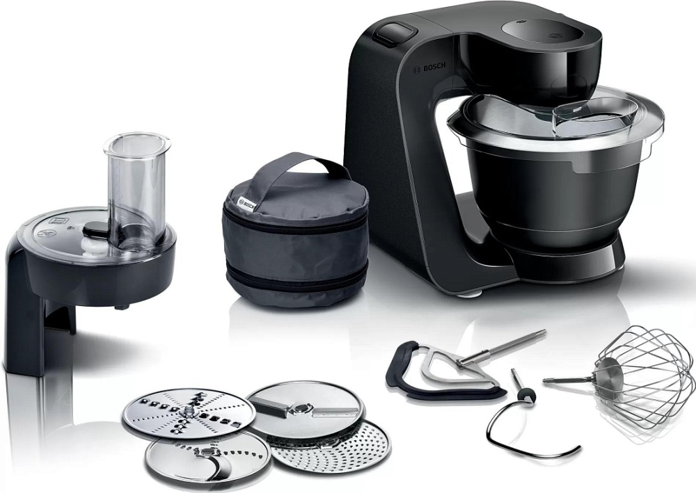Кухонная машина Bosch MUM59N26CB черного цвета оборудована механическим блоком управления, позволяющим устанавливать одну из семи скоростей. Плавная регулировка делает эксплуатацию комфортной. Импульсный режим и планетарное смешивание обеспечивают удобство процесса готовки. Защита от перегрузки гарантирует длительный срок службы без поломок. Стальная чаша обладает объемом 3,9 л. Емкость можно мыть в посудомоечной машине или под струей воды. Ножки-присоски надежно фиксируют модель на столешнице и не позволяют двигаться во время работы.