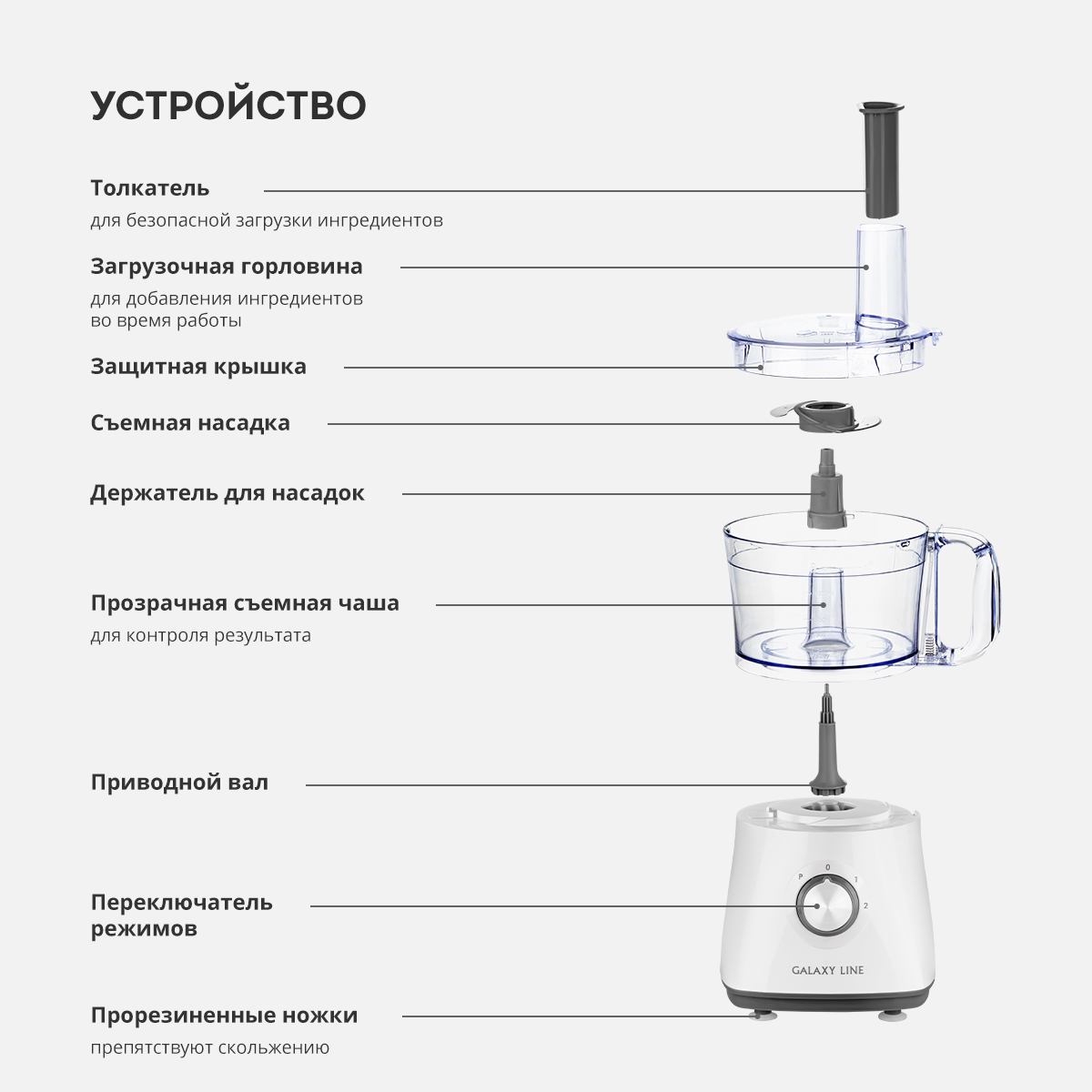 Кухонный комбайн – универсальный прибор, предназначенный для нарезки, измельчения и смешивания продуктов и ингредиентов.