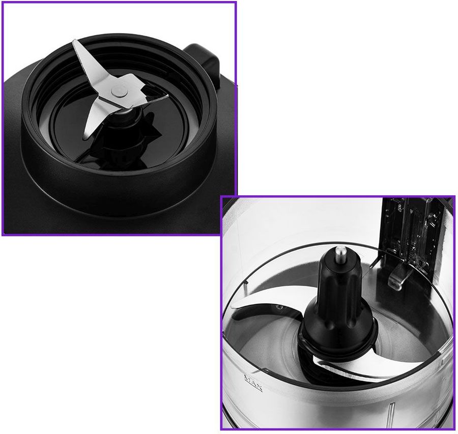 Прочие функции Кофемолка с лёгкостью справится с кофейными зёрнами, специями и орехами. У комбайна 3 режима работы: 2 скорости и импульсный режим, который можно использовать для колки льда.