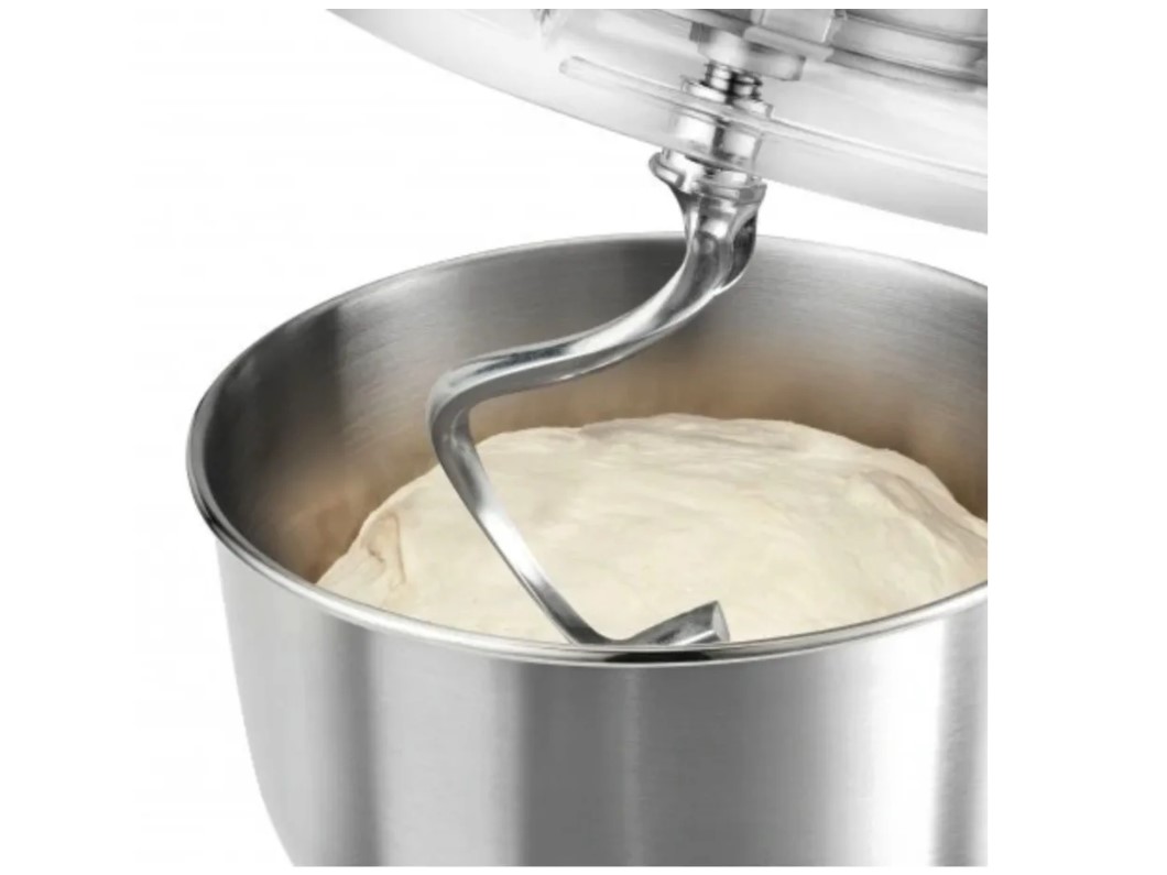 Он имеет три сильных наконечника , которые подходят для любого типа теста. Крюк используется для замеса густого теста , такого как тесто для хлеба, дрожжевое тесто, макароны или пельмени. Насадка для замешивания - в форме листа , используется для замеса теста средней густоты, такого как, например, тесто для блинов, бисквита, кремов. Венчики из нержавеющей стали используются для взбивания пены или взбитых сливок . Крюк и мешалка изготовлены из литого под давлением алюминия , что увеличивает их долговечность. Чаша емкостью 6,7 литров. Он изготовлен из нержавеющей стали, что делает его на 100% безопасным для здоровья, прочным и простым в уходе.. Чаша имеет прозрачную крышку. Содержимое чаши не разбрызгивается по всей кухне, и вы можете контролировать смесь во время работы , и даже высыпать ингредиенты для теста через специальное отверстие.