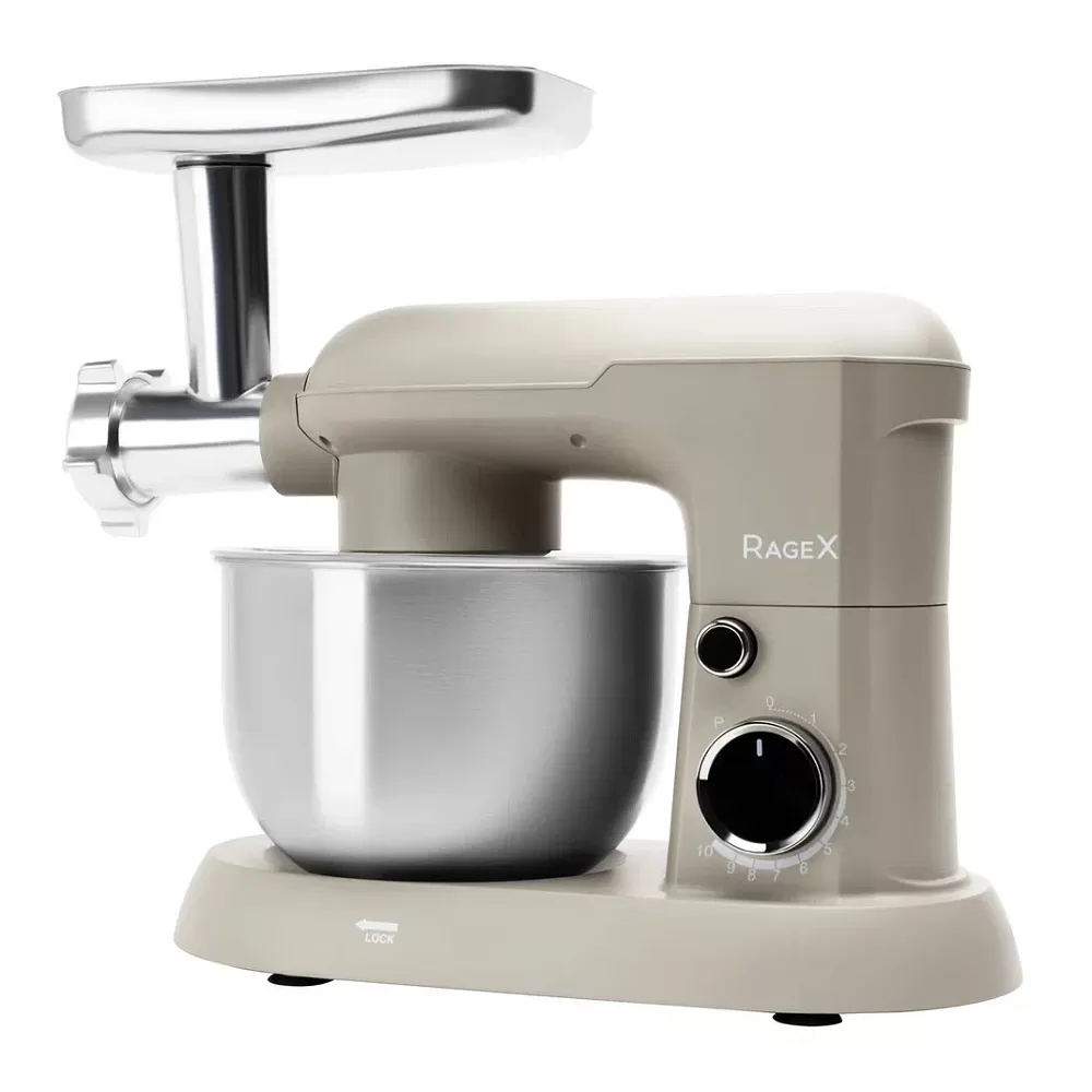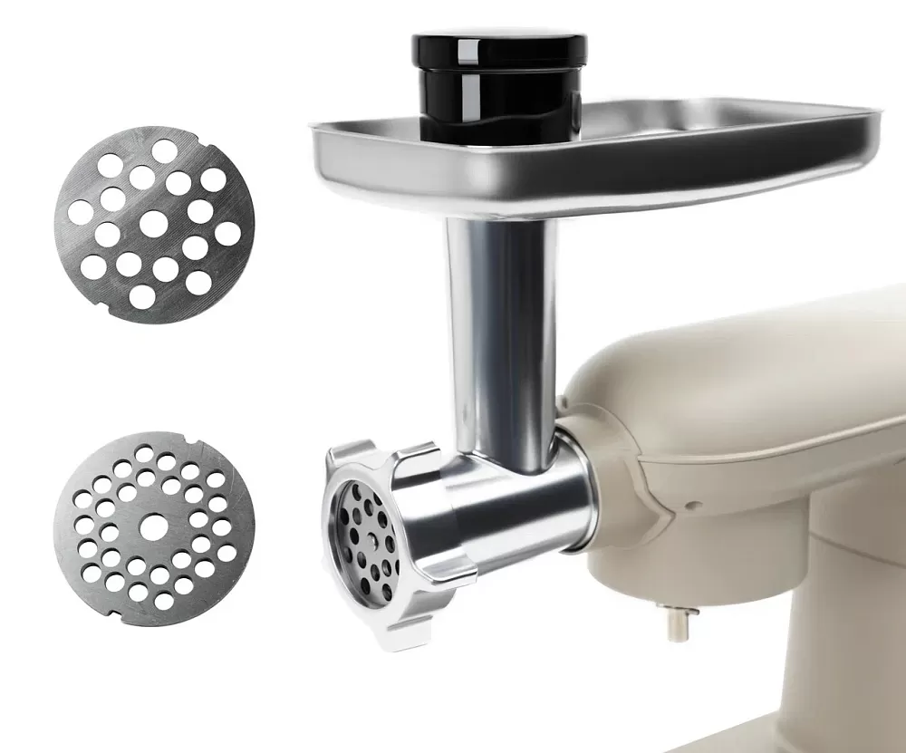 • Мясорубка (корпус мясорубки, толкатель, лоток, шнек, зажимная гайка, лезвие, решетки с отверстиями (5мм, 7мм));