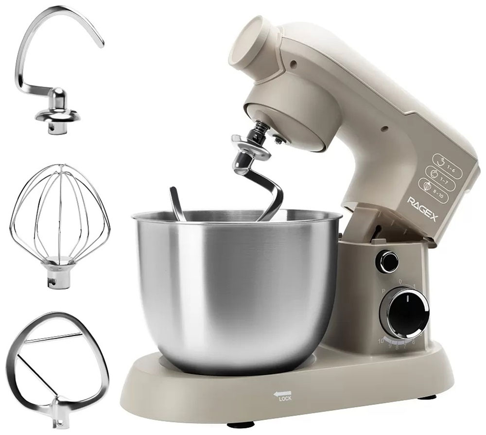 Благодаря насадкам в комплекте, планетарный миксер можно использовать для различных задач. Крюк идеально подходит для замешивания однородного теста и заменит тестомес.