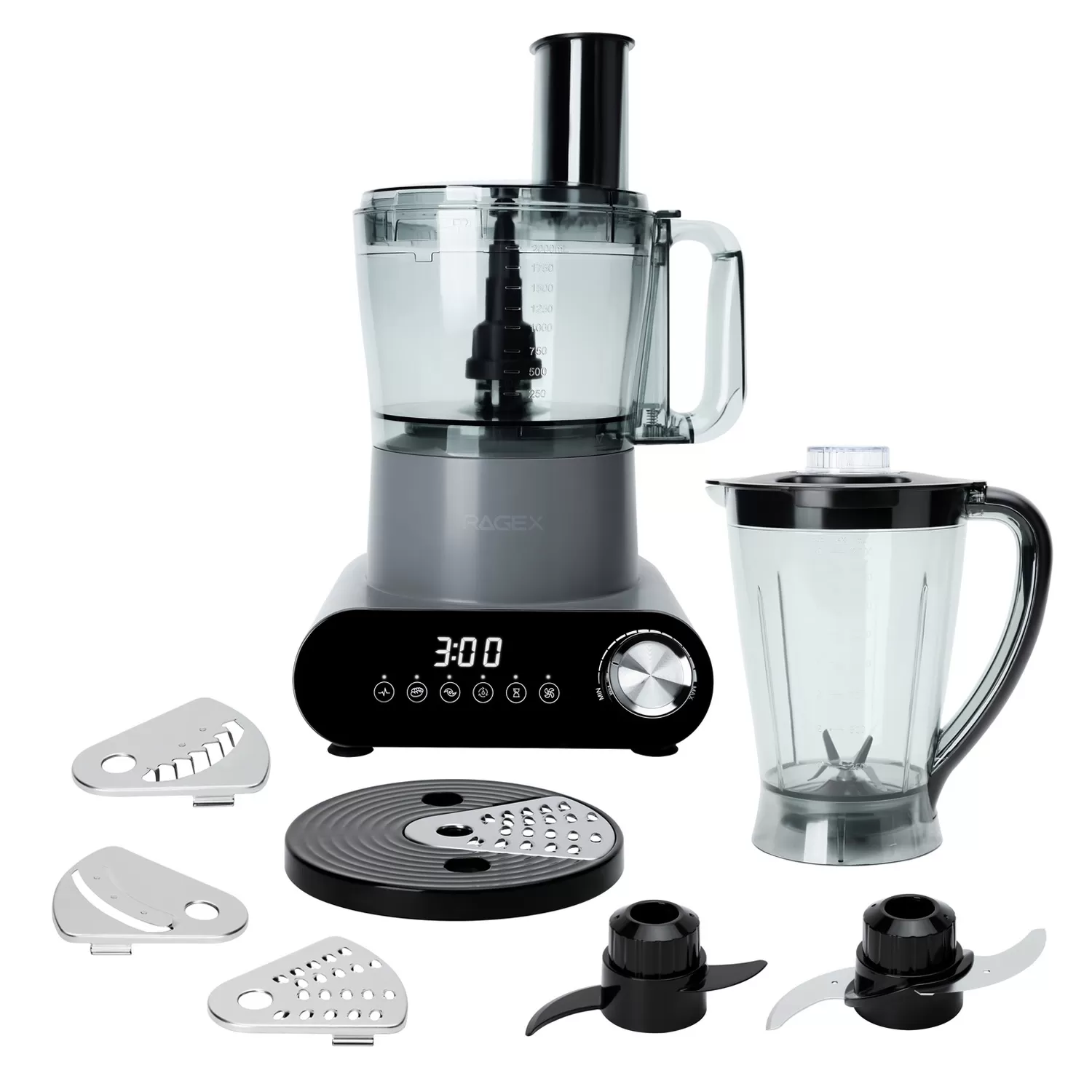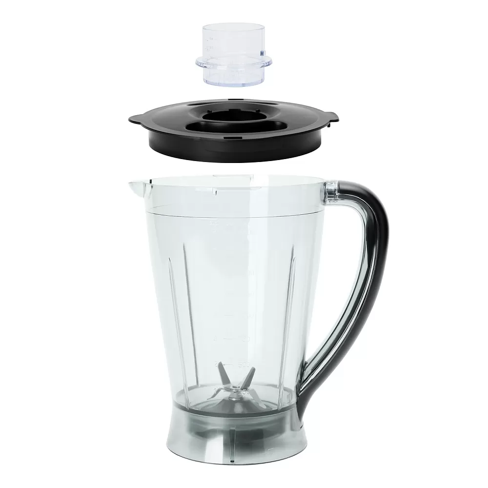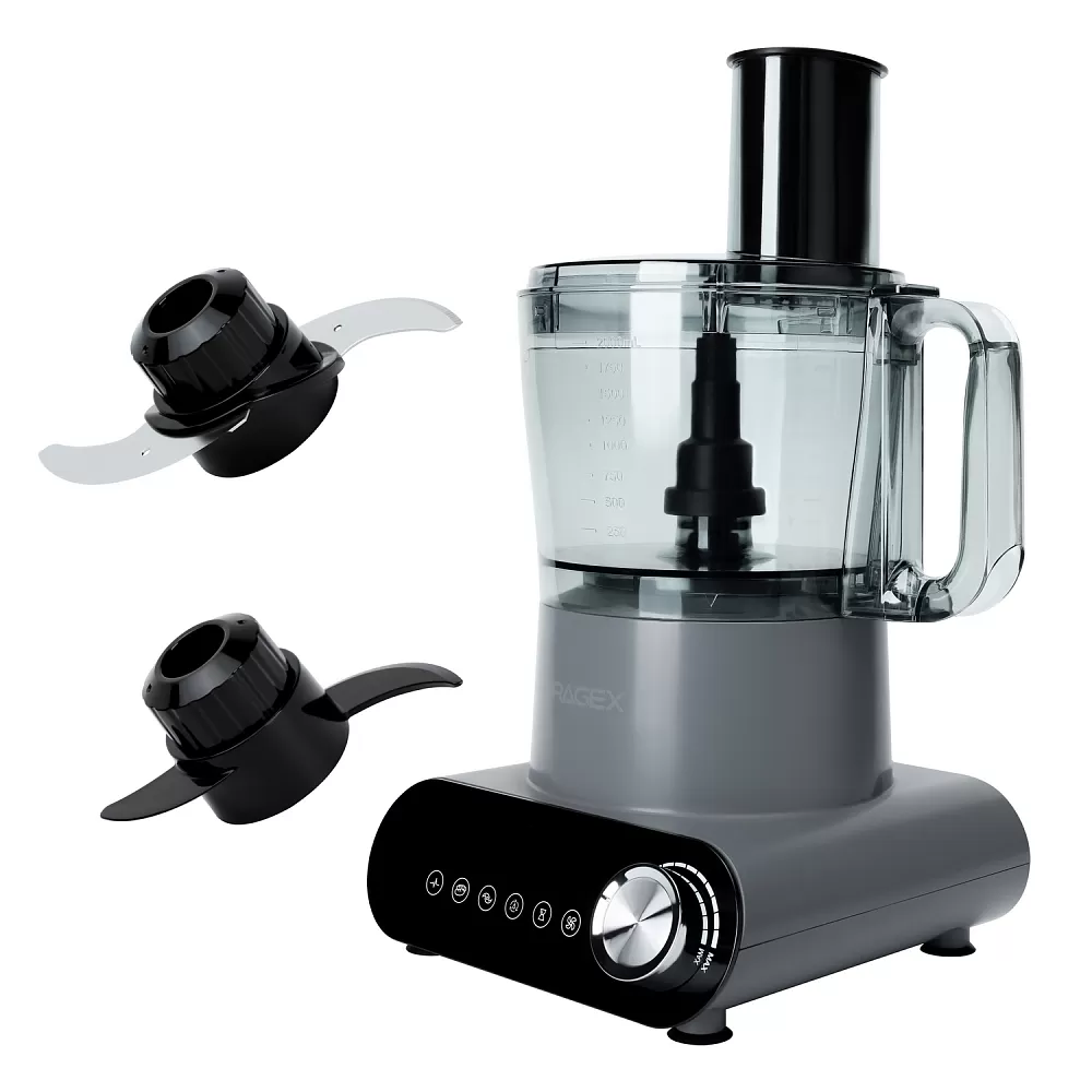 Корпус - пластик; чаша измельчителя - пластик; чаша блендера - пластик; лезвия - нержавеющая сталь; нож для измельчения - нержавеющая сталь; нож для теста - пластик