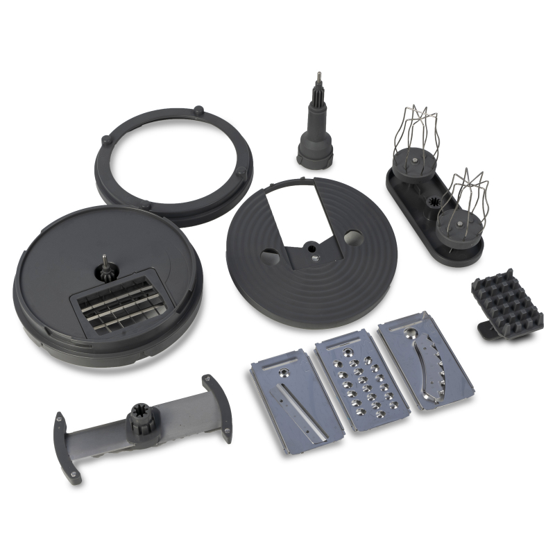 Насадки/ функции:шинковка, нарезка кубиками, нарезка ломтиками, венчик