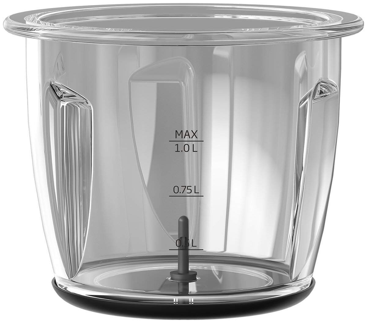 измельчителем удобно пользоваться одной рукой. Чаша объемом 1 л