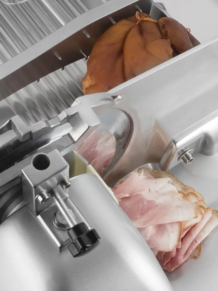 Профессиональный слайсер для нарезки в эксклюзивном итальянском дизайне подойдет не только для дома, но и для ресторанов, баров и кейтеринга.