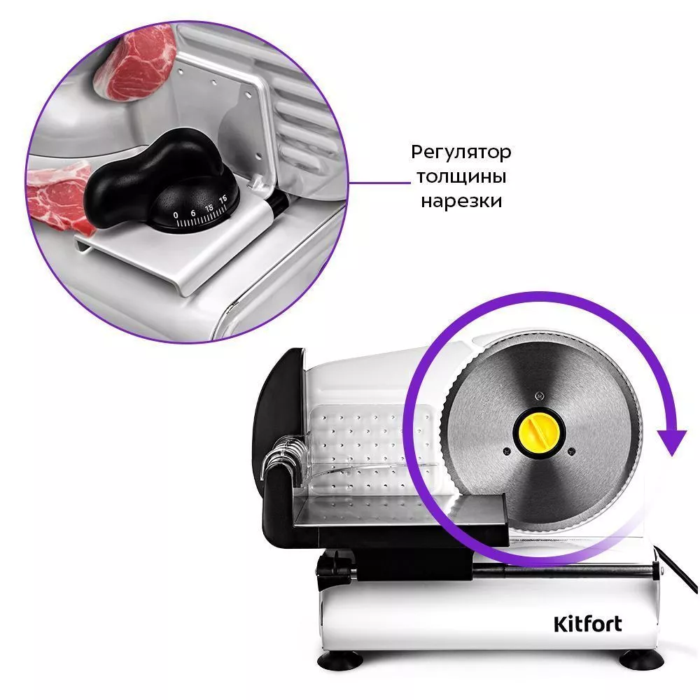 Ломтерезка КТ-6269 - незаменимый помощник на кухне, предназначенный для быстрой и аккуратной нарезки различных продуктов, таких как хлеб, овощи, фрукты, колбасы, сыры и готовое мясо. Благодаря ей вы получите ровные ломтики одинаковой толщины.