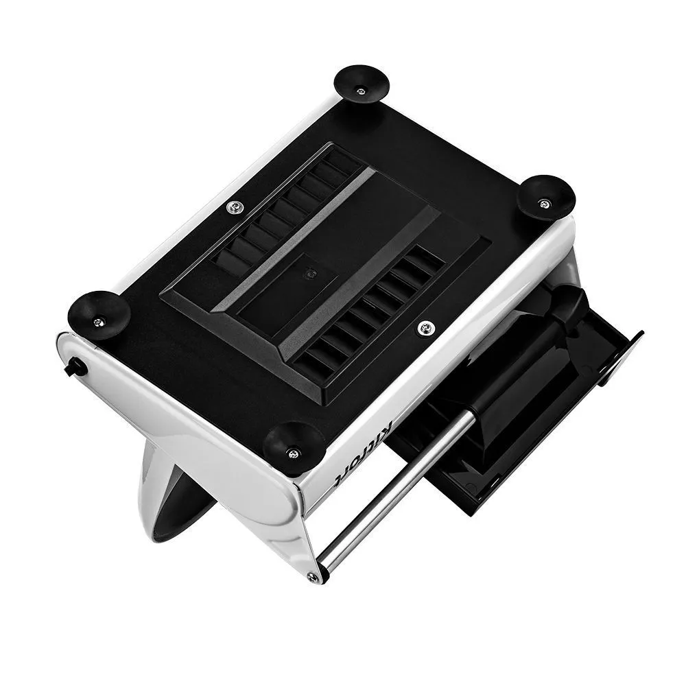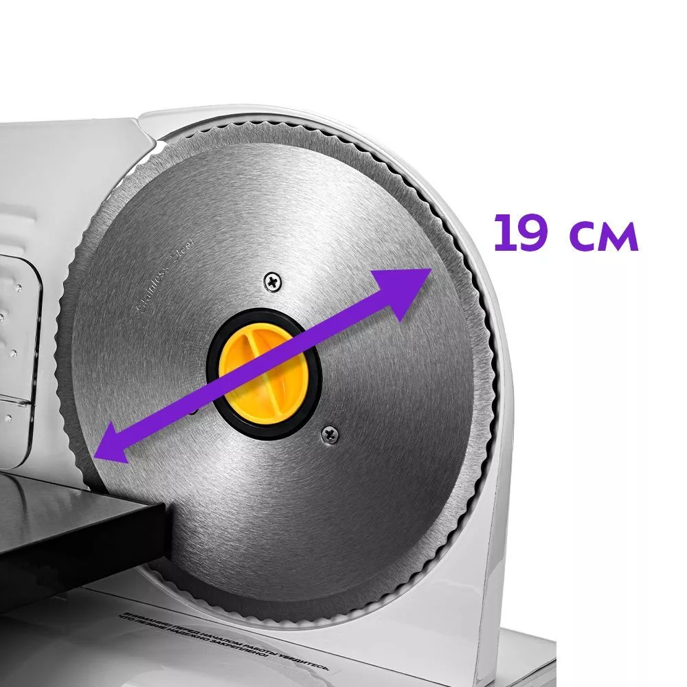 В данном приборе предусмотрены ножки на присосках, чтобы сделать его более устойчивым. Это обеспечивает безопасность использования и предотвращает случайное смещение или скольжение ломтерезки во время работы.