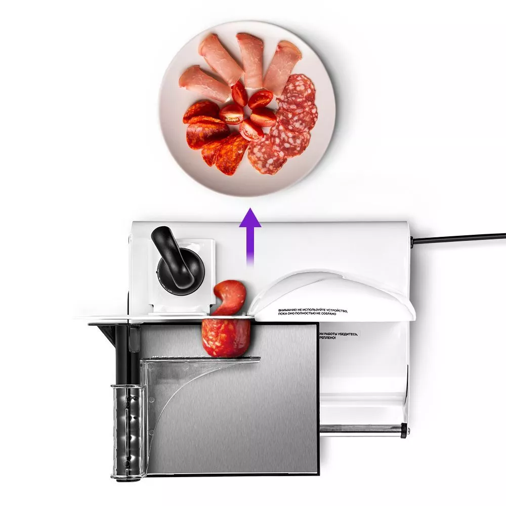 Ломтерезка предназначена для нарезки хлеба, овощей, фруктов, колбас, сыров и готового мяса. С её помощью можно быстро и аккуратно нарезать ломтики одинаковой толщины для приготовления различных блюд.