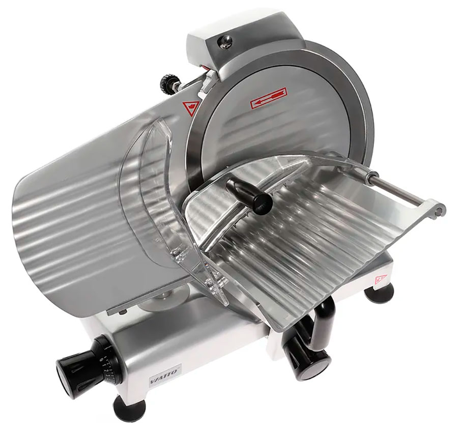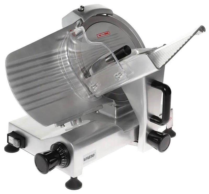 Гастрономический электрический слайсер VIATTO HBS-300 предназначен для нарезки мяса, салями, ветчины, сыров и овощей ломтиками заданной толщины, благодаря чему сокращается время на подготовку холодных закусок. Оснащён встроенным затачивающим устройством.