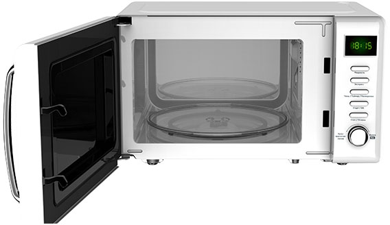 отдельно стоящая микроволновая печь, объем 20 л, мощность 700 Вт, электронное управление, тактовое и кнопочное управление, дисплей