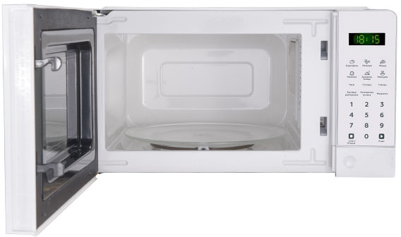 отдельно стоящая микроволновая печь, объем 20 л, мощность 700 Вт, электронное управление, кнопочное управление, дисплей