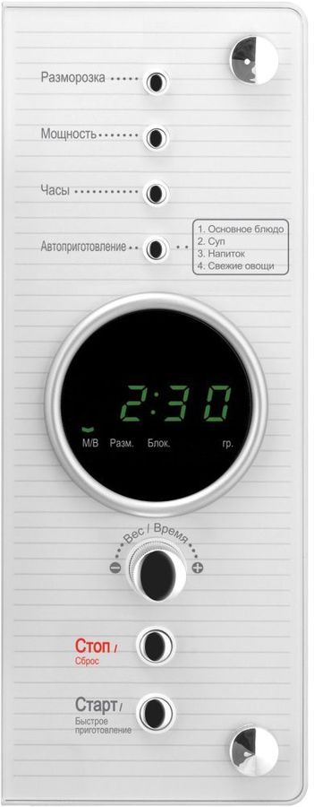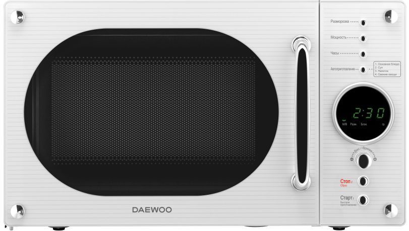 Особенности Ретро дизайн, часы, таймер 59мин, система вогнутых отражателей «C.R.S.», автоприготовление, авторазморозка по весу/времени