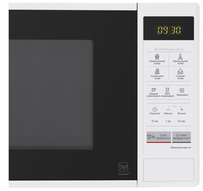 дисплей, подсветка камеры, блокировка от детей, система равномерного распределения микроволн