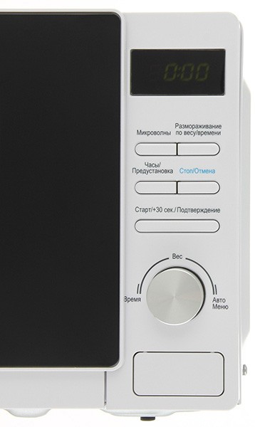 объем: 20 л, мощность: 700 Вт, внутреннее покрытие камеры: эмаль, переключатели: кнопочные, поворотные тактовые, программы: разморозка, автоматическое приготовление, таймер: до 95 мин, дисплей, защита от детей
