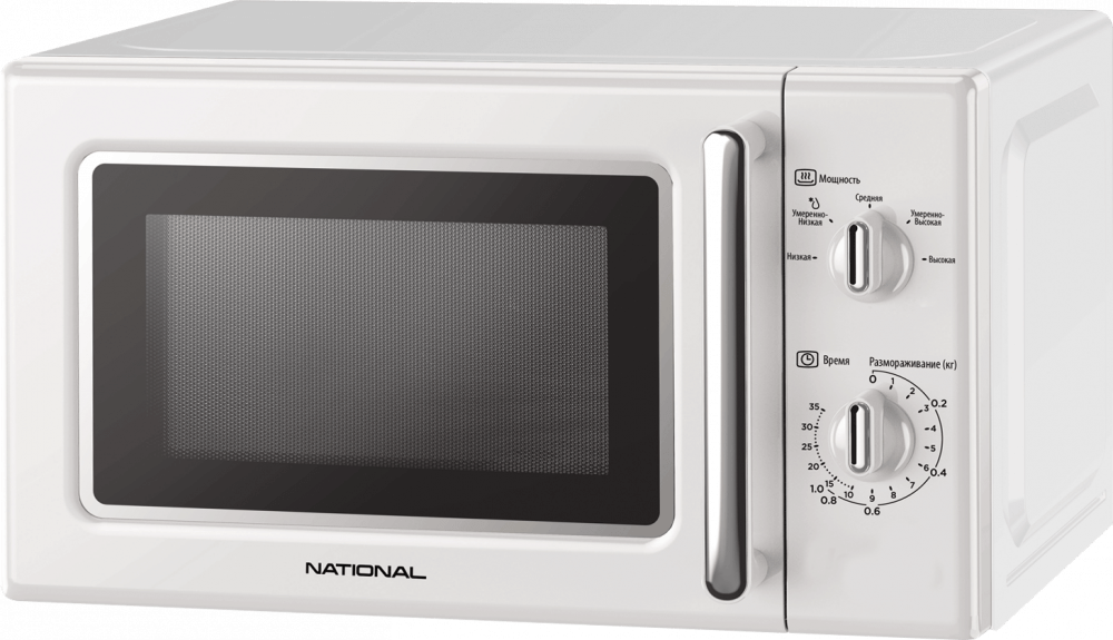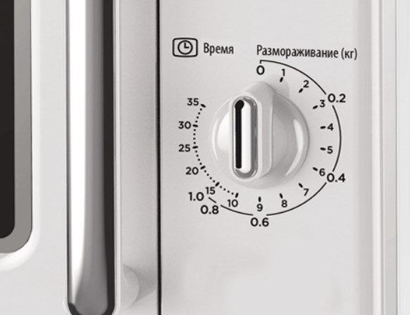 отдельно стоящая микроволновая печь, объем 20 л, мощность 700 Вт, механическое управление, поворотные переключатели