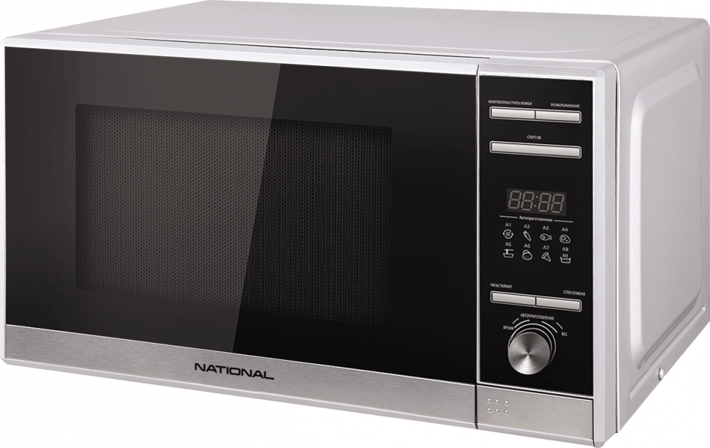 отдельно стоящая микроволновая печь, объем 20 л, мощность 700 Вт, гриль, электронное управление, тактовые и кнопочные переключатели, дисплей, защита от детей